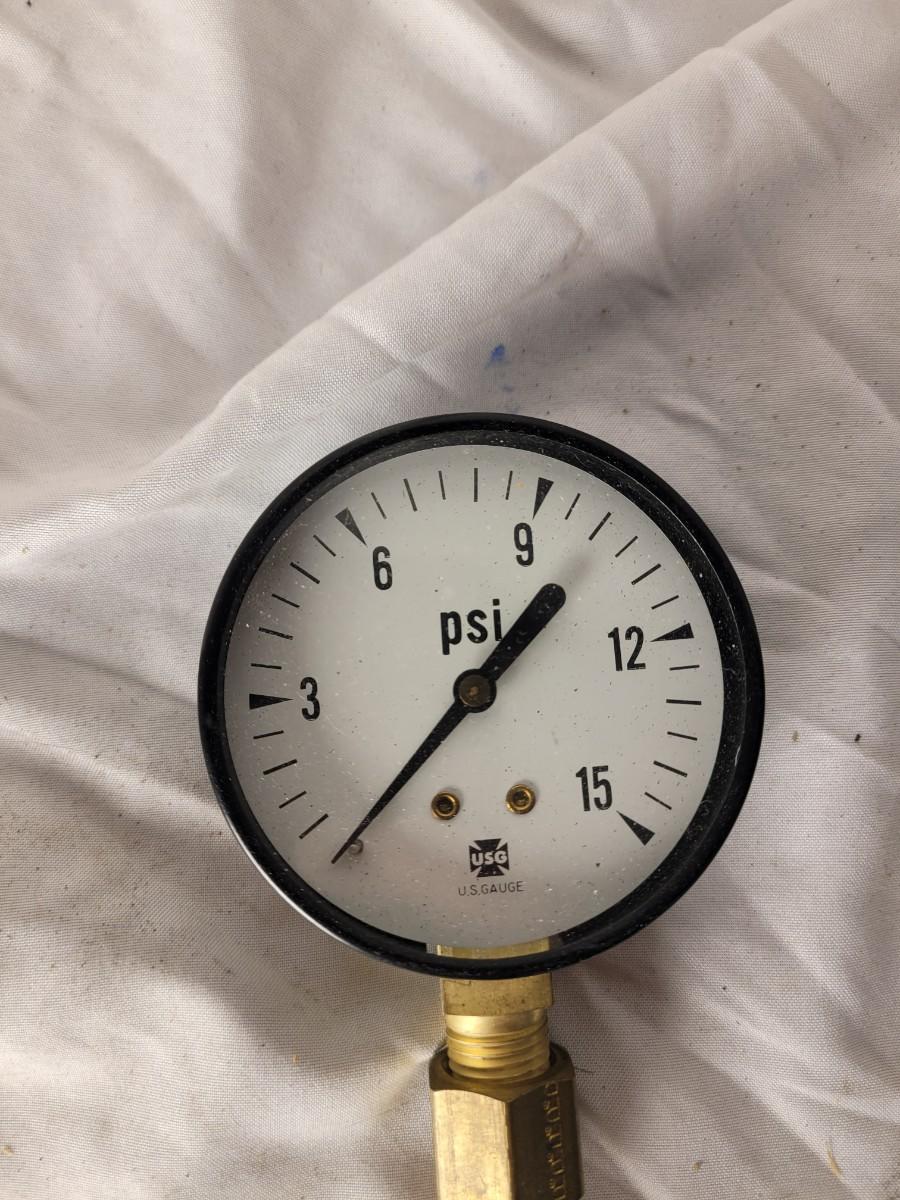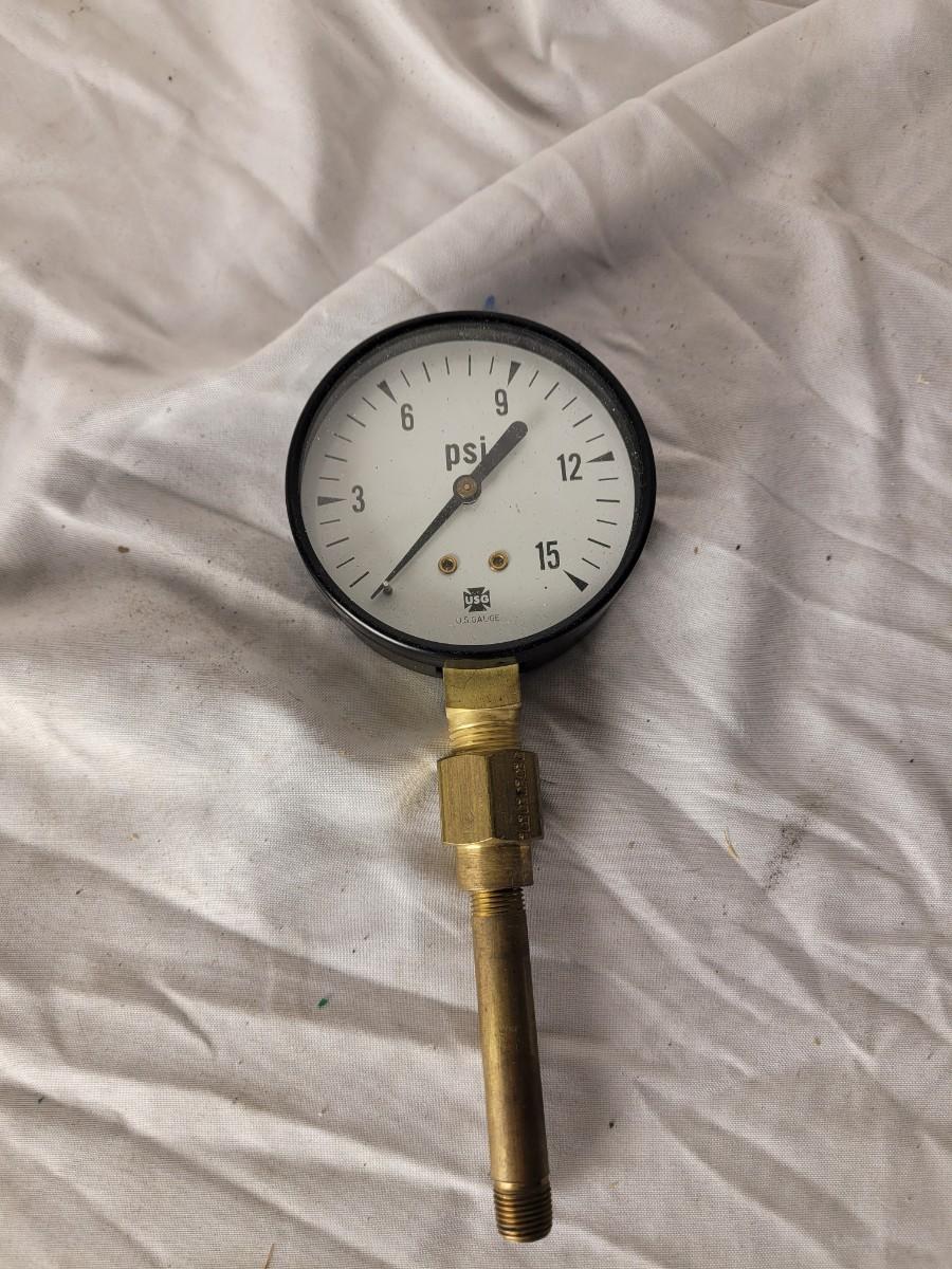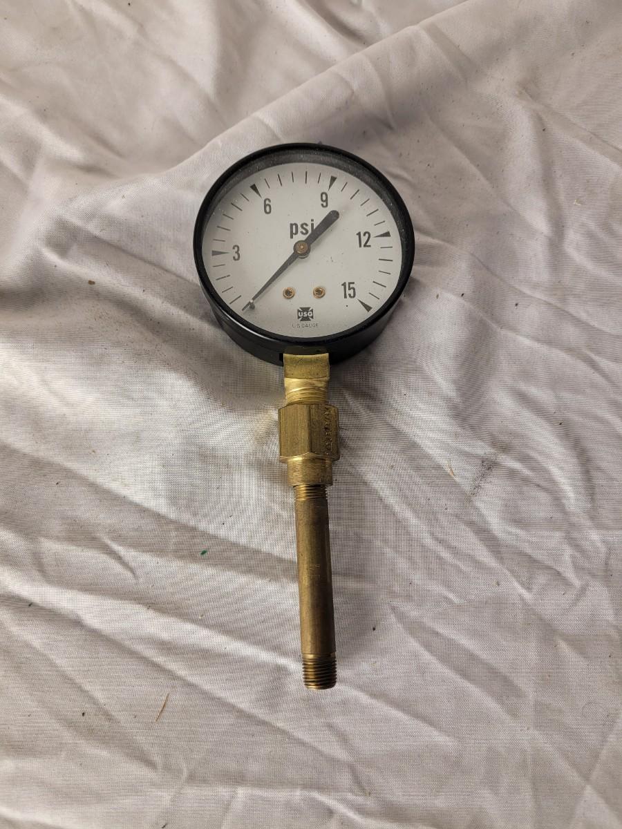Vintage USG pressure guage, 0-15psi with brass fittings