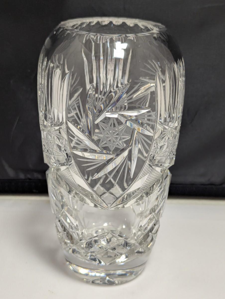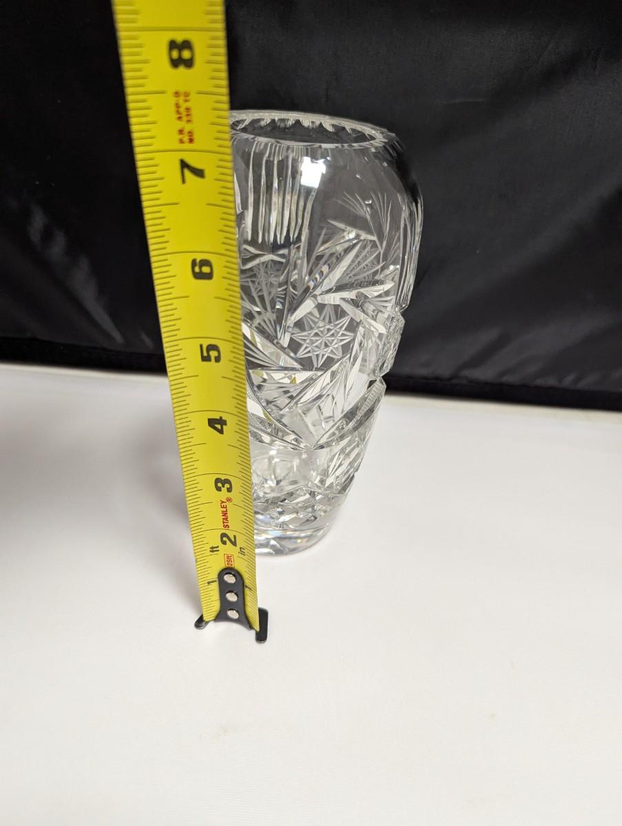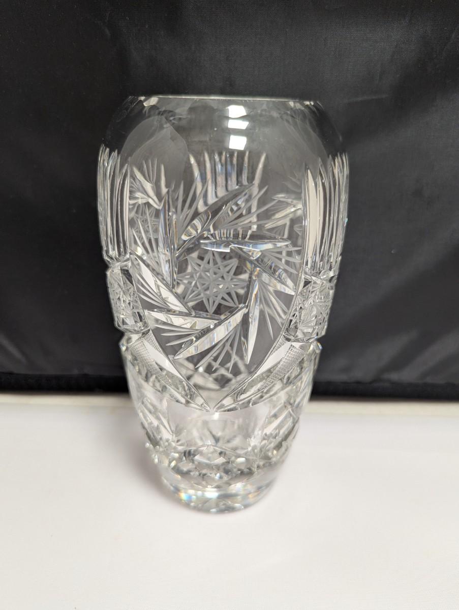 Vintage USSR U.S.S.R Soviet Lead Crystal Vase Cut Pressed Glass Hobstar #12