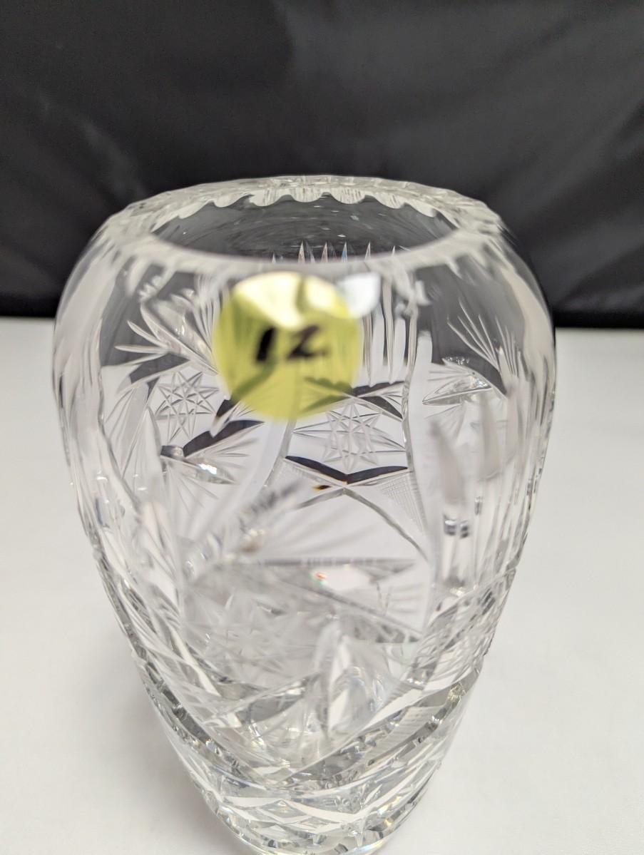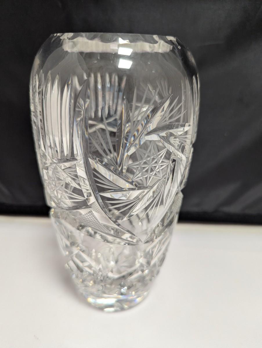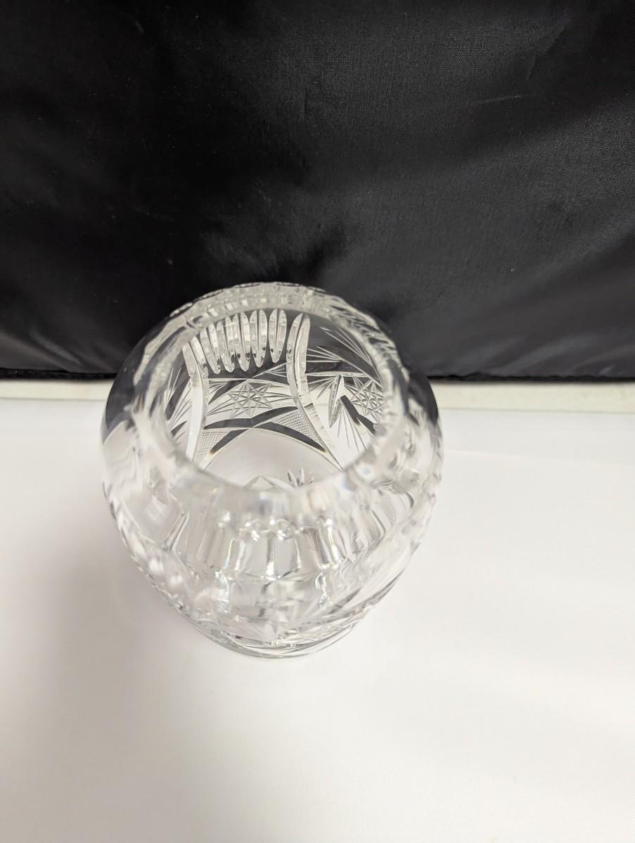 Vintage USSR U.S.S.R Soviet Lead Crystal Vase Cut Pressed Glass Hobstar #12