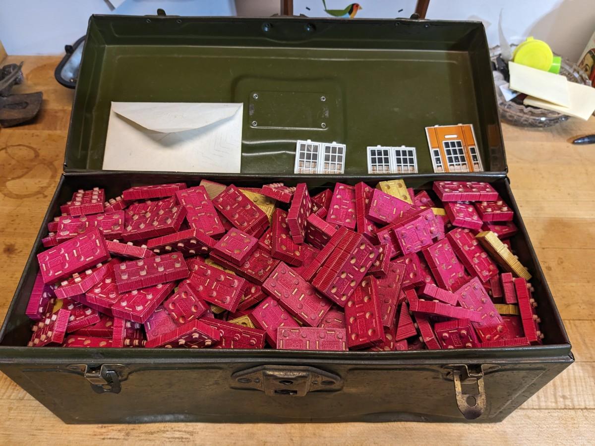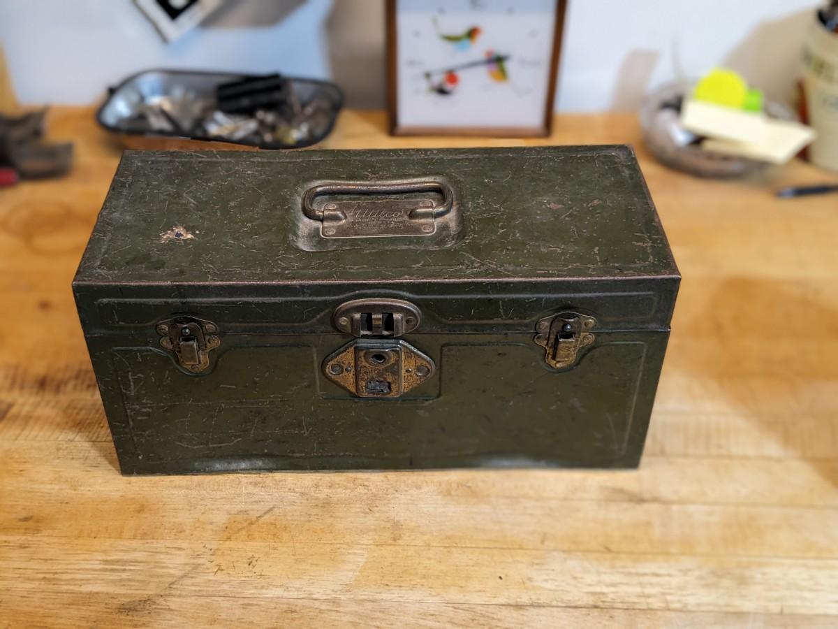 Vintage Utilco Metal Box w/ Loads of American Block Pcs
