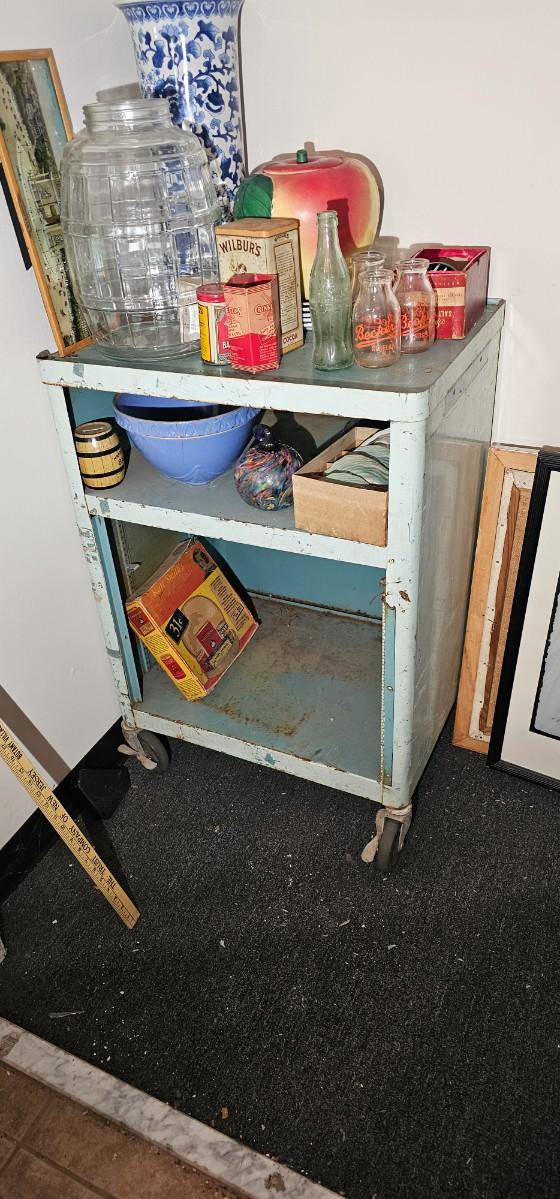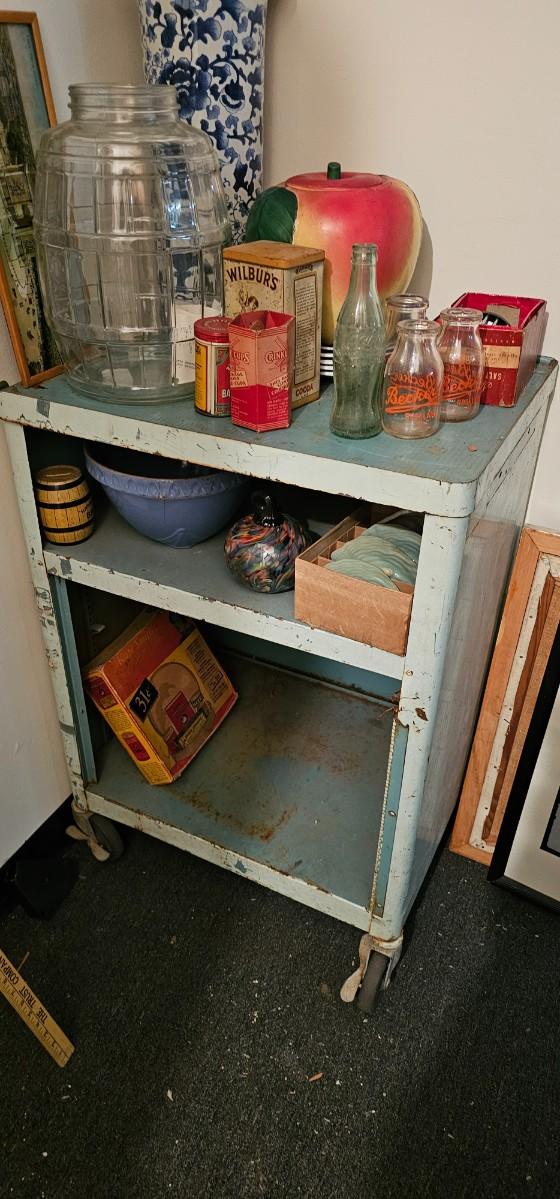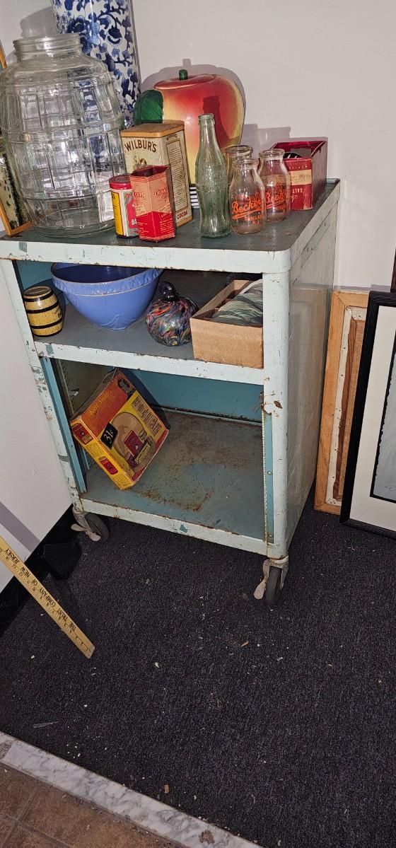 Vintage distressed utility retro mid century modern metal 60s 70s bar rolling.Cart