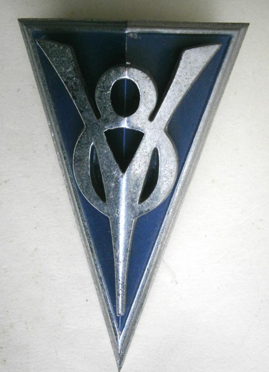 Vintage V8 Automobile Insignia, 3 1/4 in. tall, painted metal