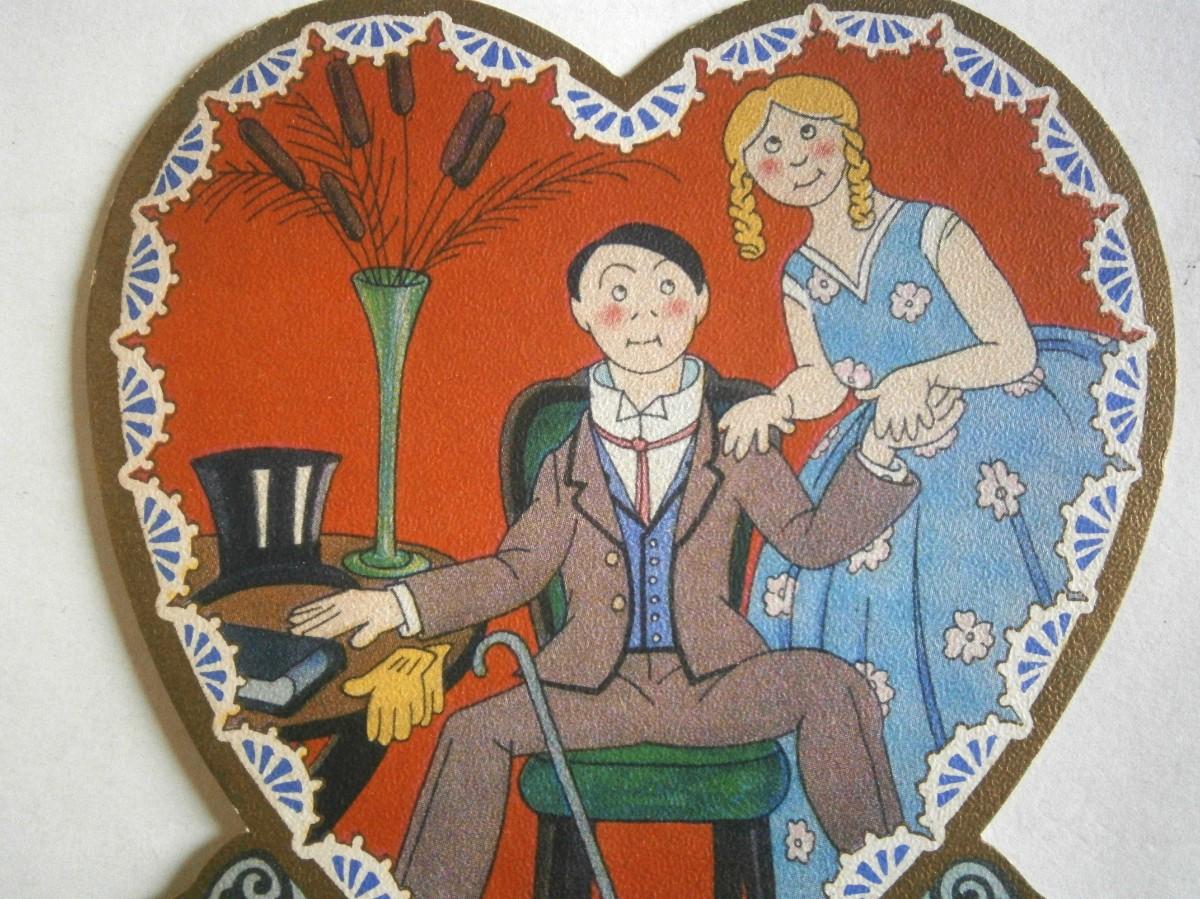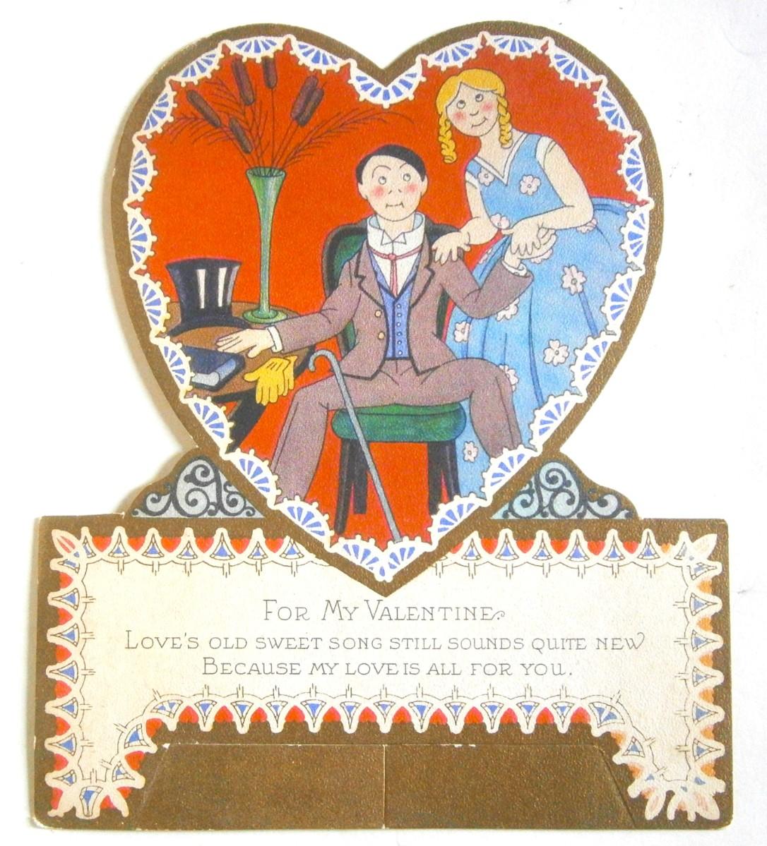 Vintage Valentine Day card, 6 1/4 x 5 1/4 in., light cardboard.