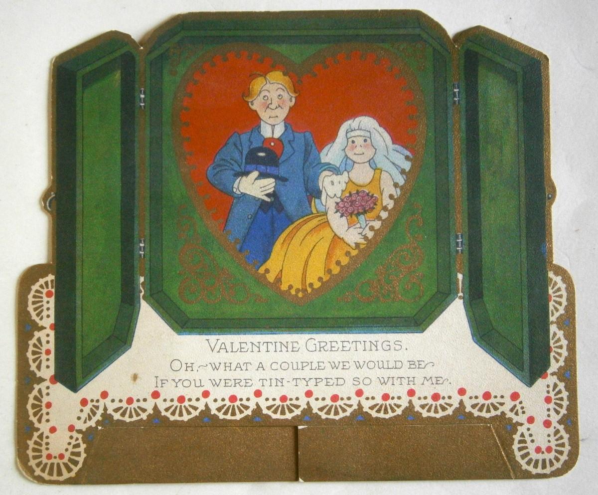 Vintage Valentine Day card, 5 3/8 x 6 1/4 in., light cardboard.