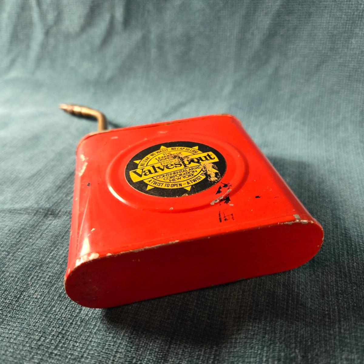 This auction lot is for a Vintage Valvespout Oil Can by Continental Arms Corp., NY. This oil can might be the new star of your collection. The can's body is about 3-inches square plus a 3-inch spout. No contents.