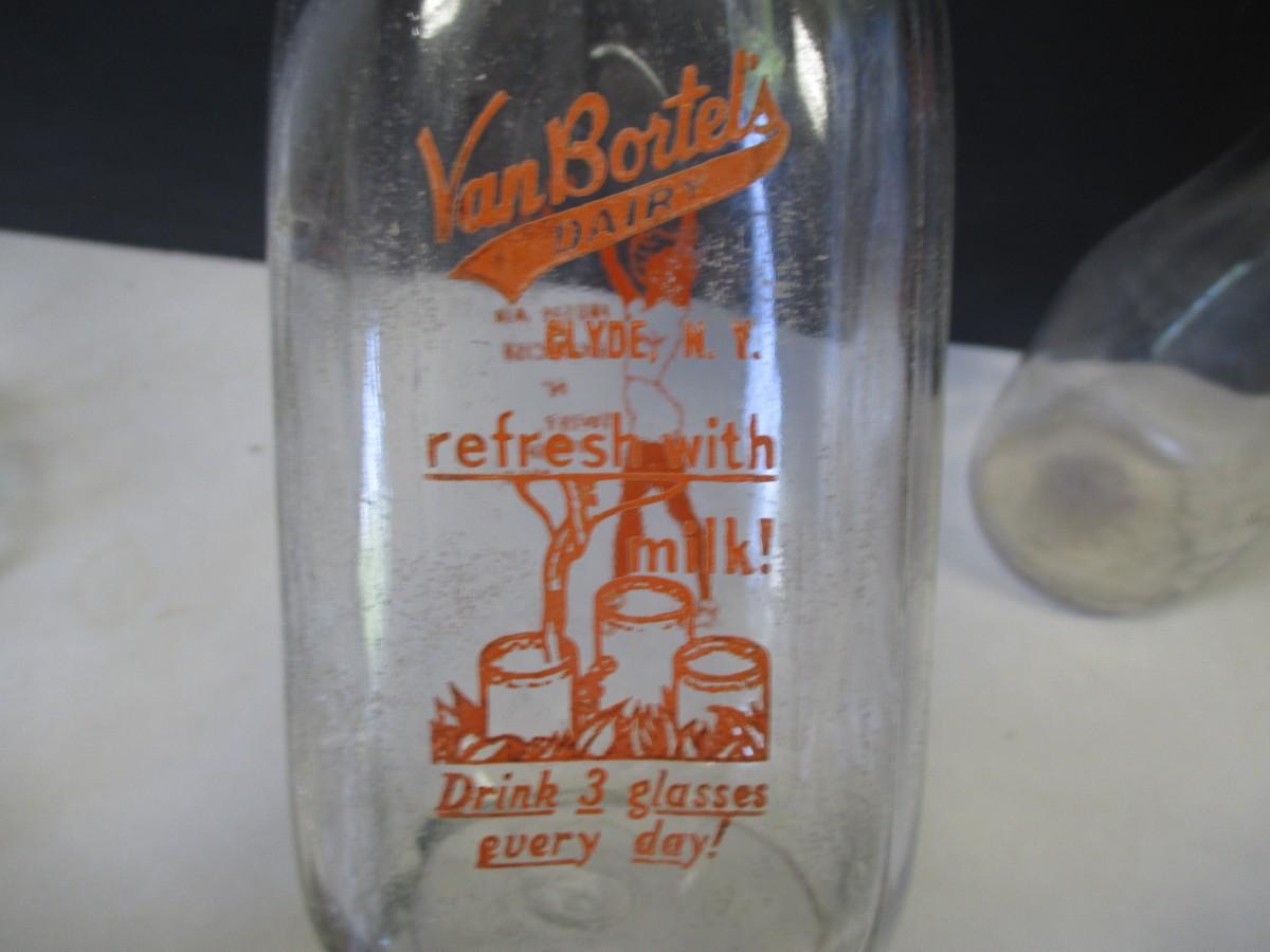 Vintage Van Bortel's Dairy Clyde,NY & Quigley's Dairy Bottles