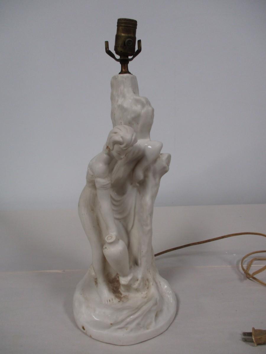 Vintage Van Briggle Rebecca At The Well White Matte Lamp