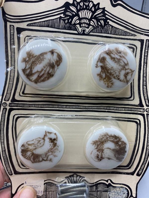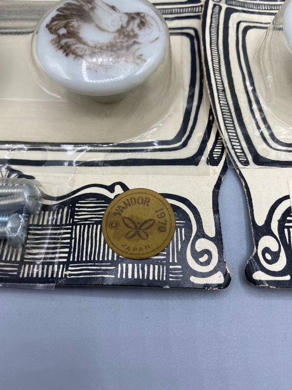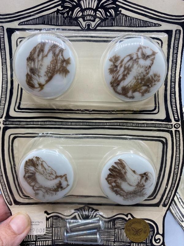 Vintage unopened 1970 Vandor owl drawer knobs. 2 sets of 4 in original packaging. About 1.25" in size.