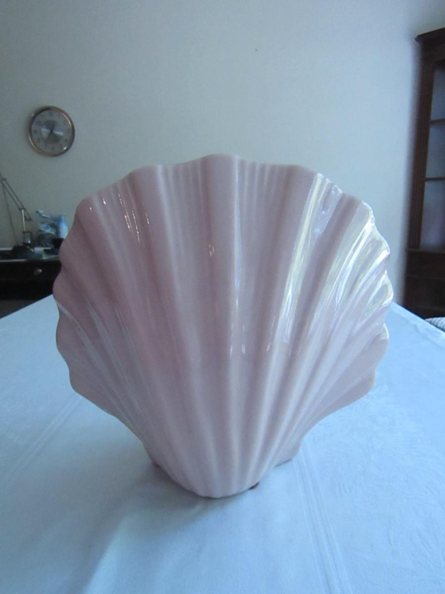 Vintage Vanguard Accents Shell Design Glazed Ceramic Vase