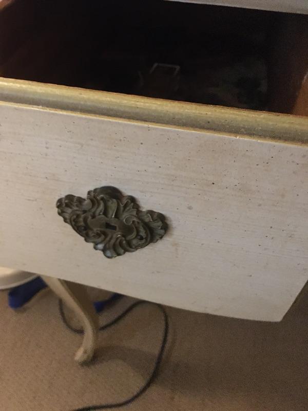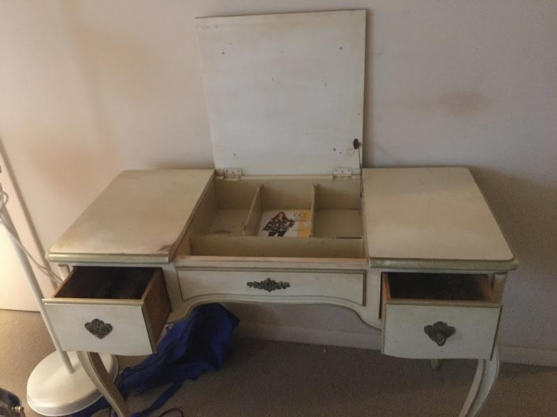 Top opens and has 2 drawers, one pull missing. 18x 40Hx39L