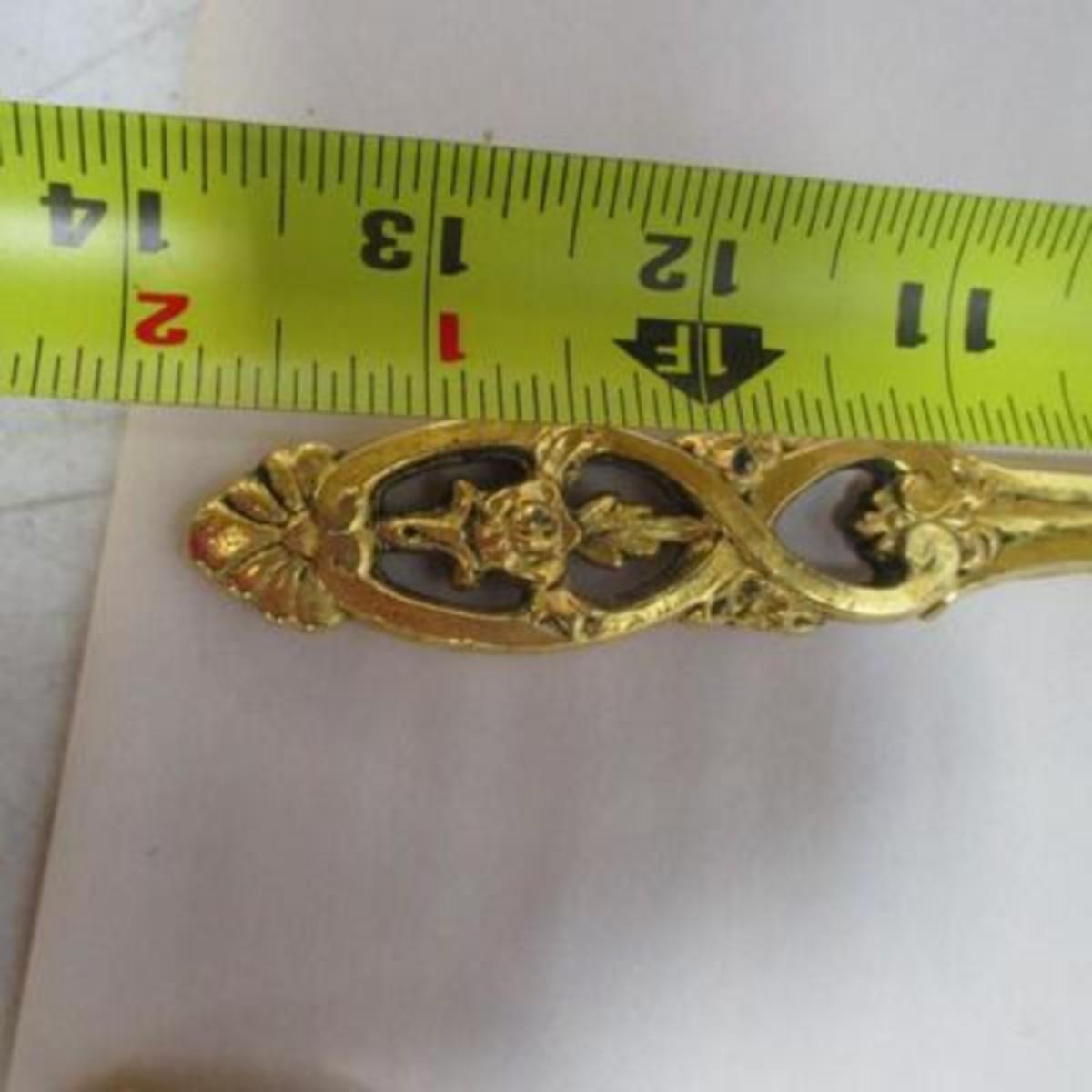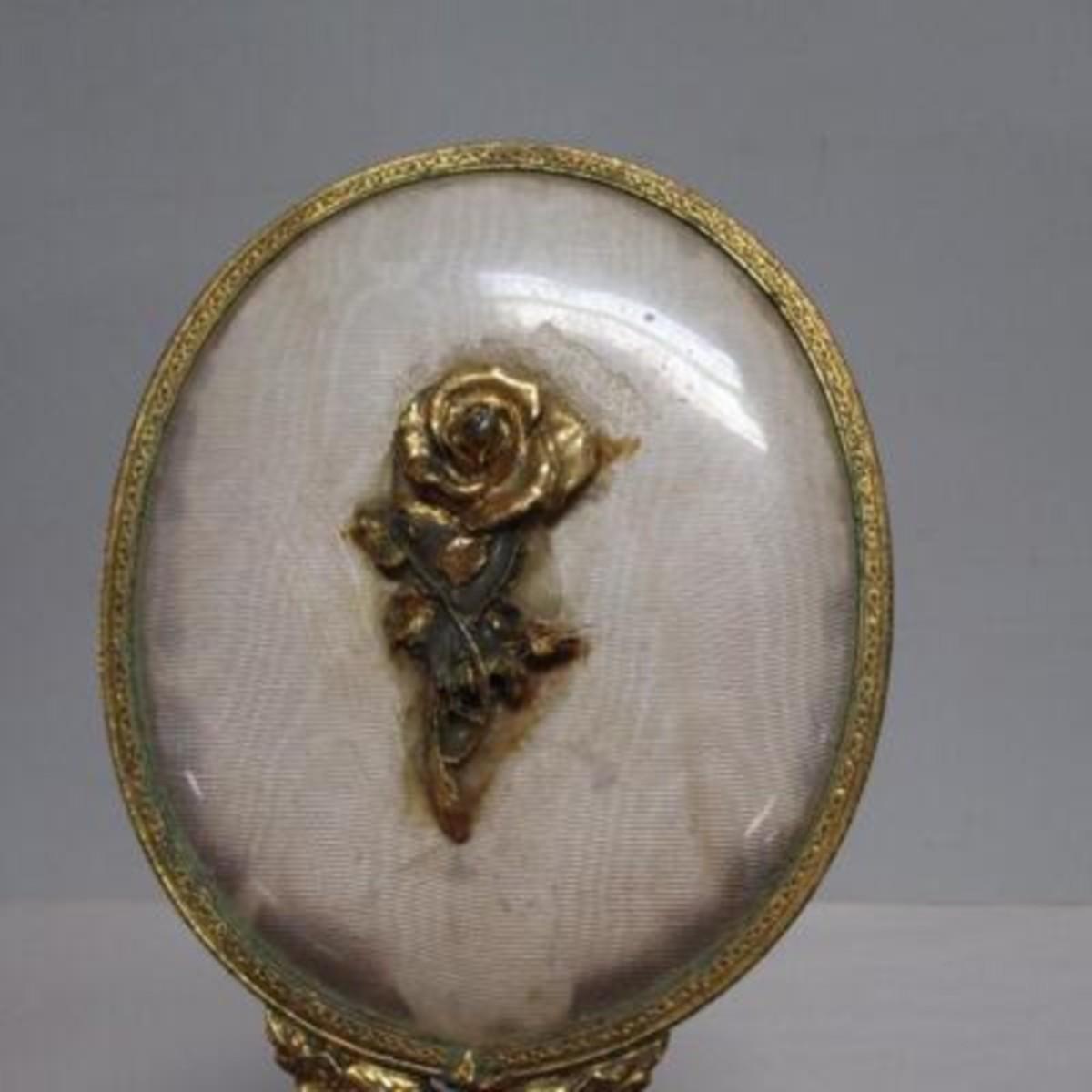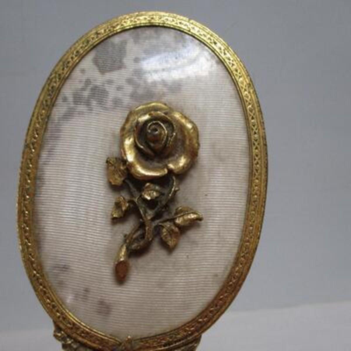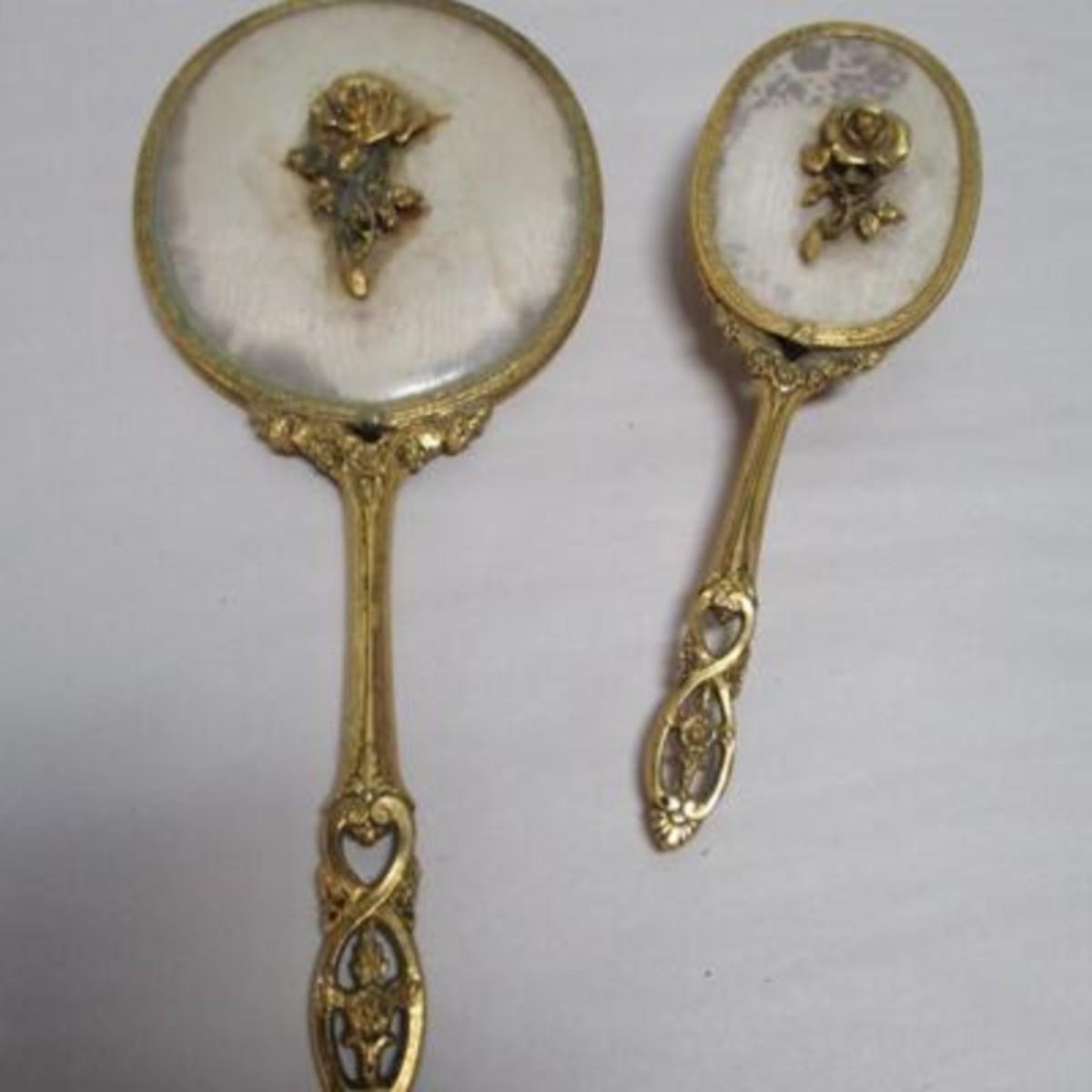 Vintage Vanity Mirror & Brush - (Brass Flower Design)