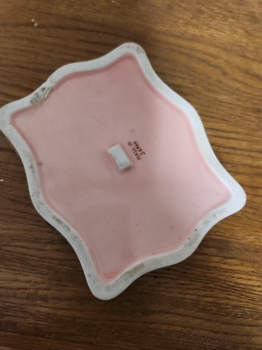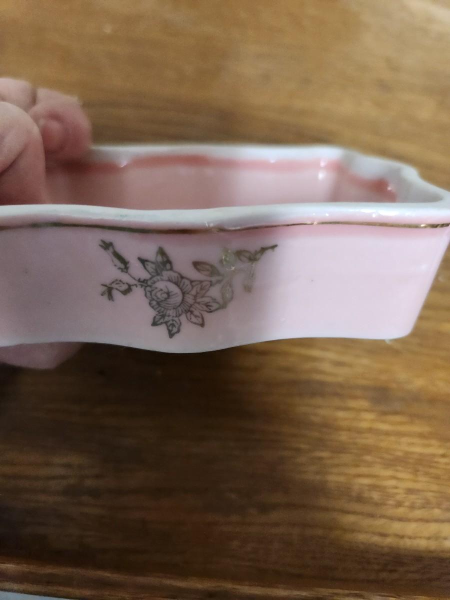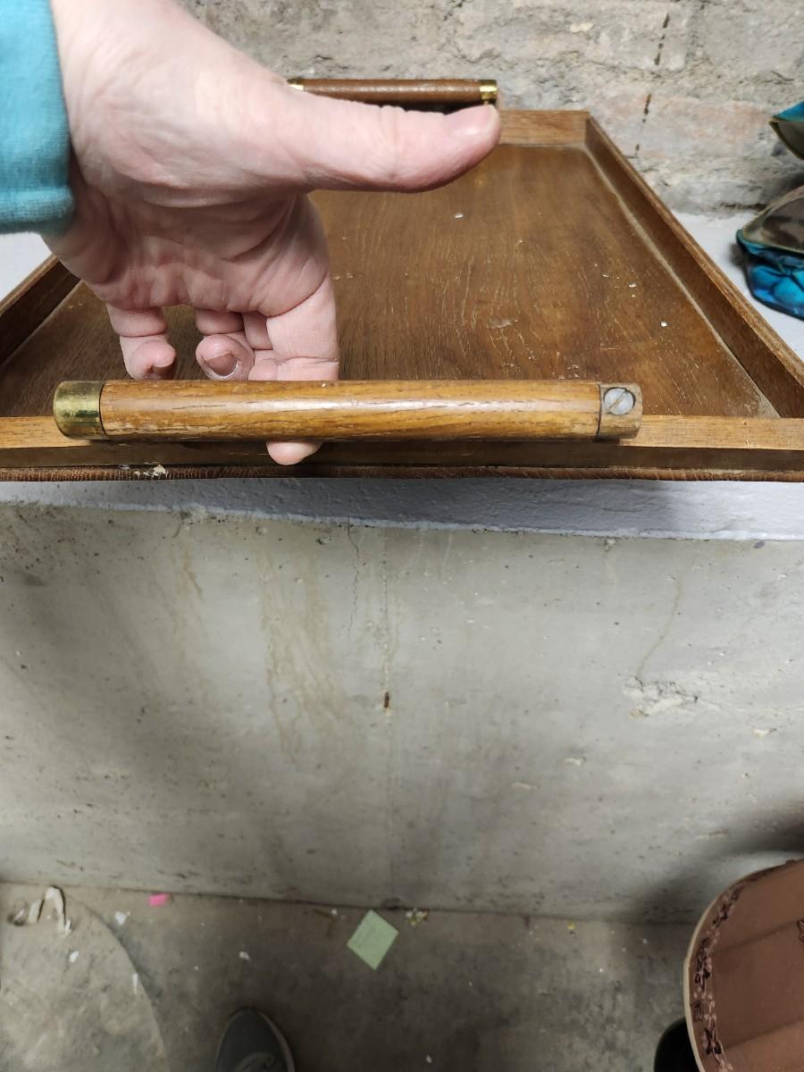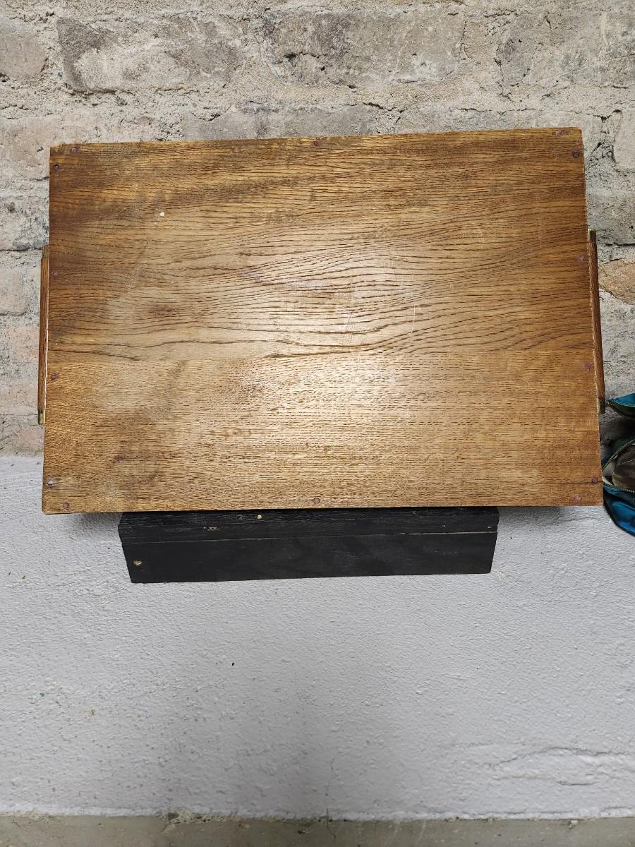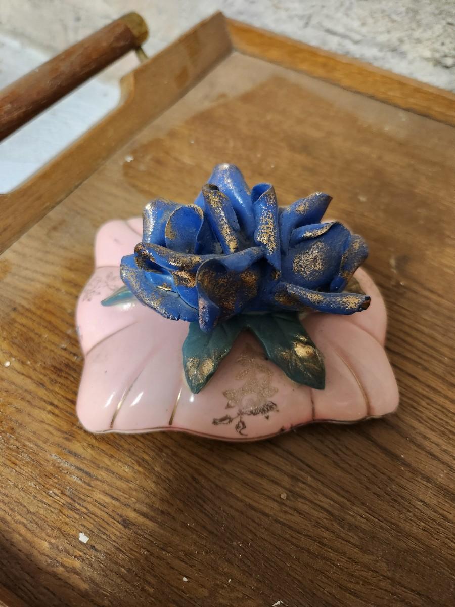 Mirror, brush, comb, velvet lined box, pick ceramic box, vintage makeup bag and wood tray