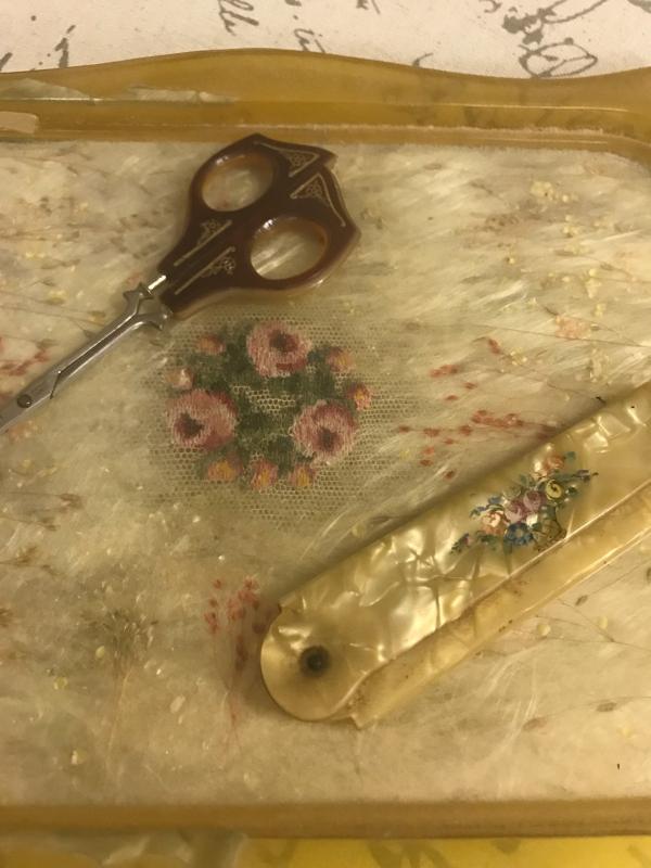 Vintage Vanity Tray with Comb and Scissors (Item #139)