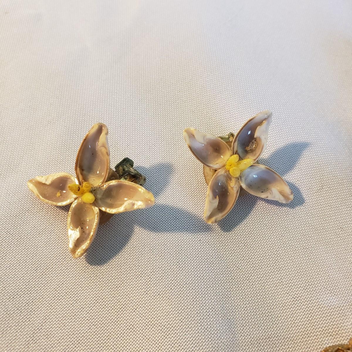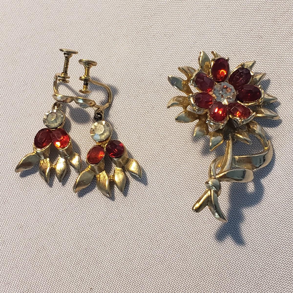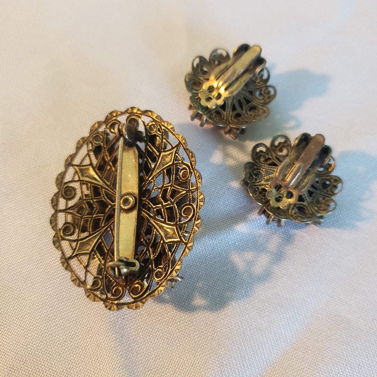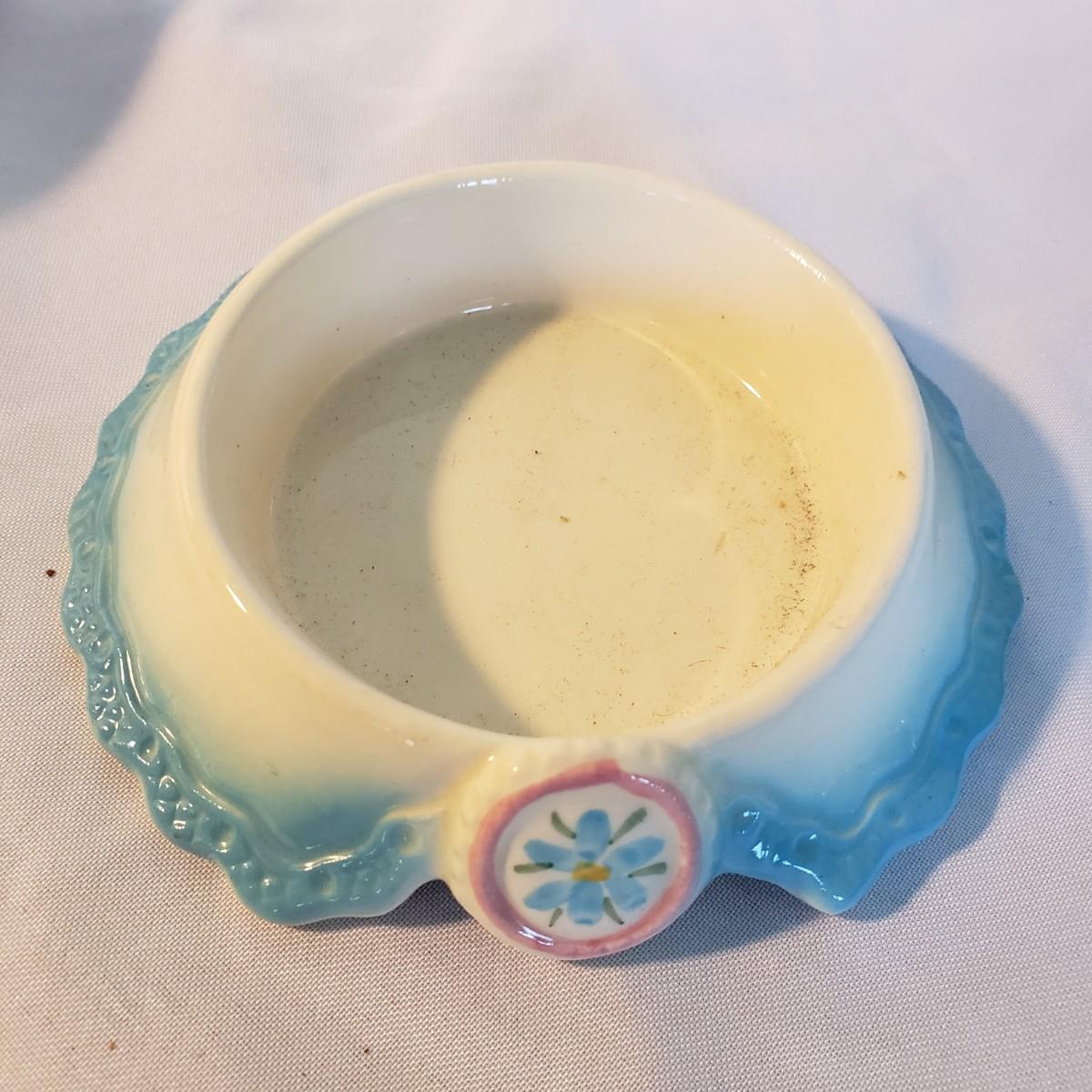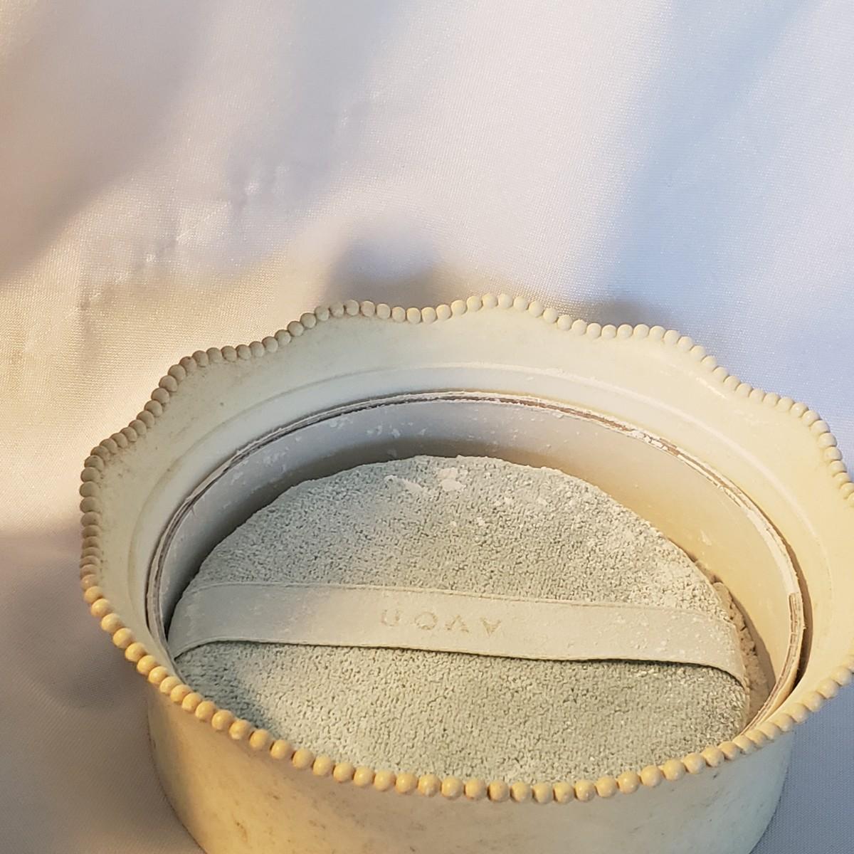 This large lot features some sweet vintage items. There is some vintage Avon with makeup still in them! The large plastic powder ",Here's My Heart" measures 6" x 2"H. The two ceramic dishes, one pink with a floral lid (4" x 3" x 2"H) and a blue collar bowl. The hand mirror, brush, and come have metal handles with a floral print on the backside. The bluebird is chalkware marked USA. The jewelry will take you back in time! The wooden rose pin is 2".
