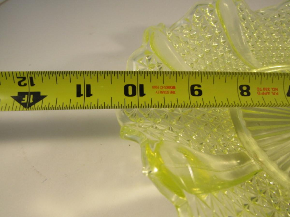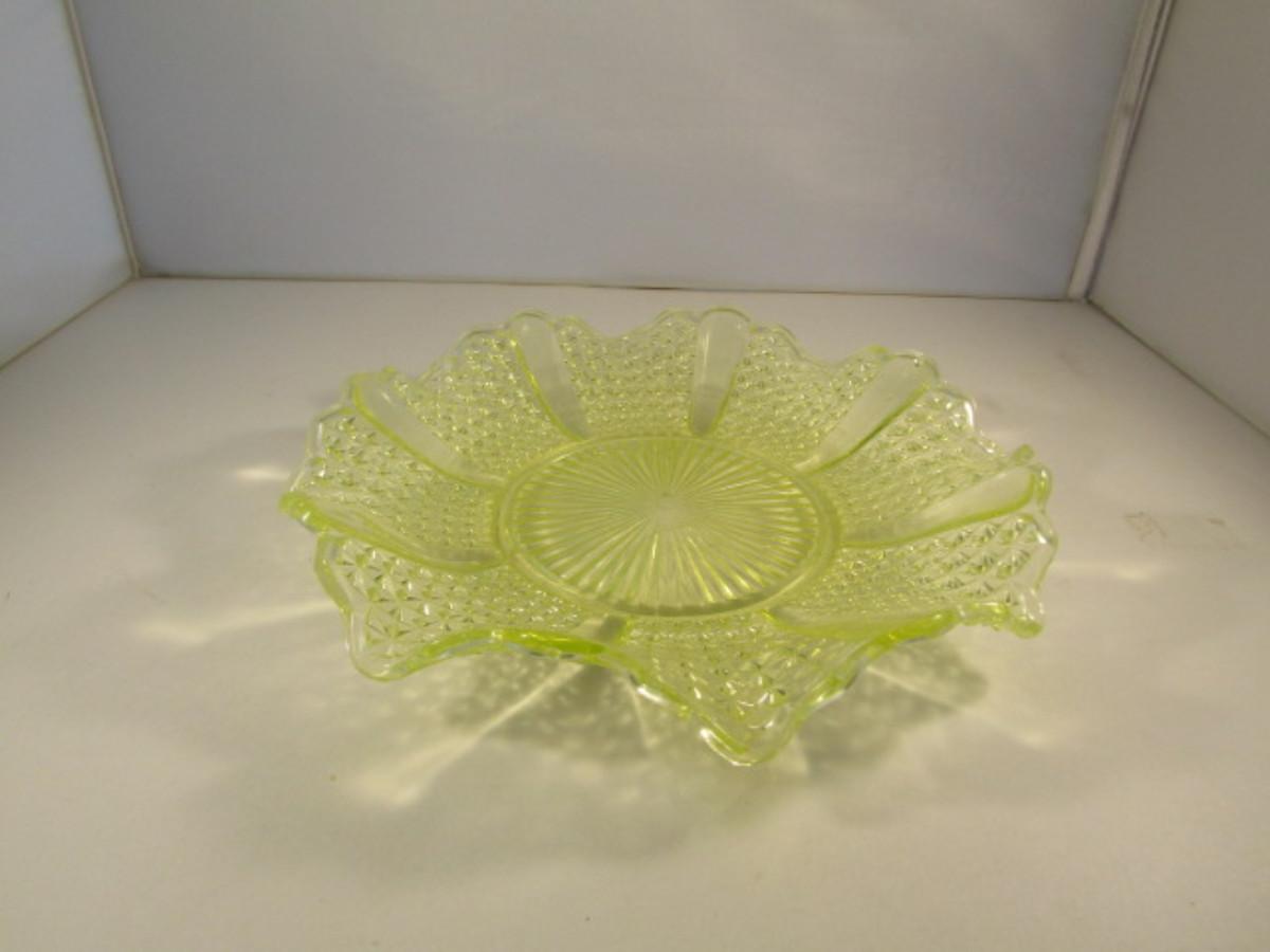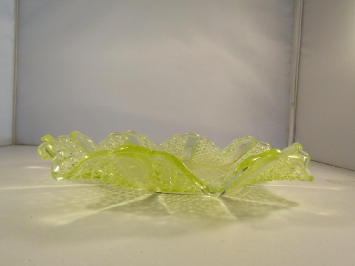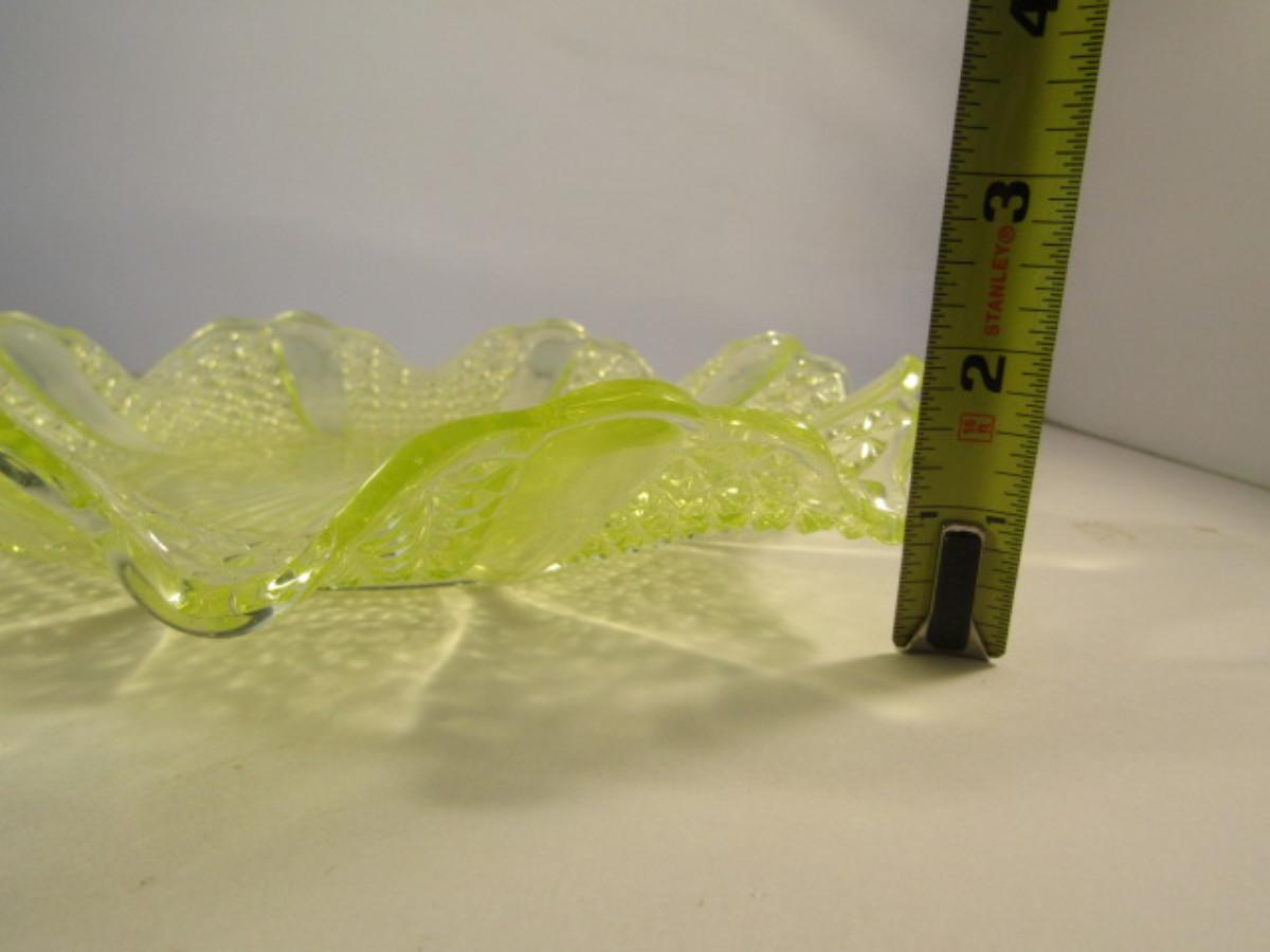Vintage Vaseline Glass Bowl with Ruffled Edge- Approx 10 1/2" in Diameter