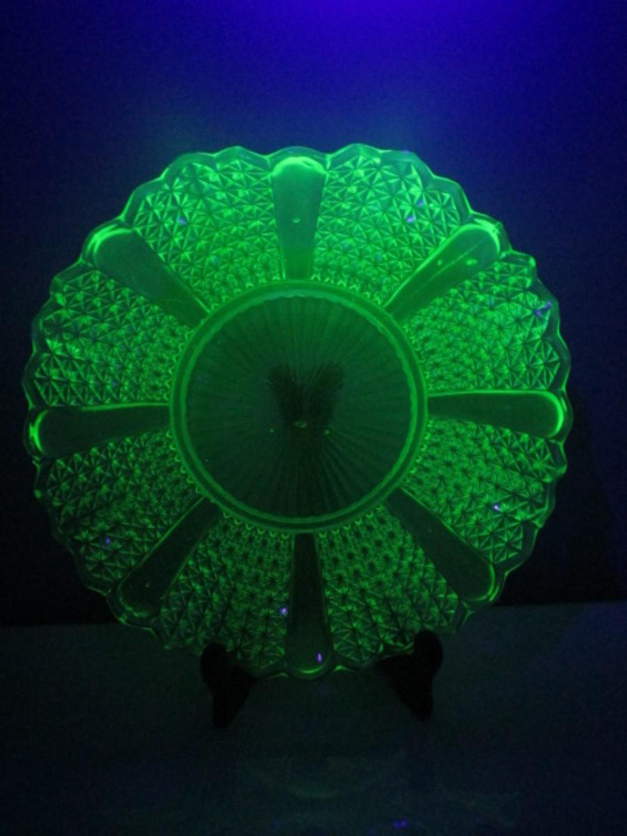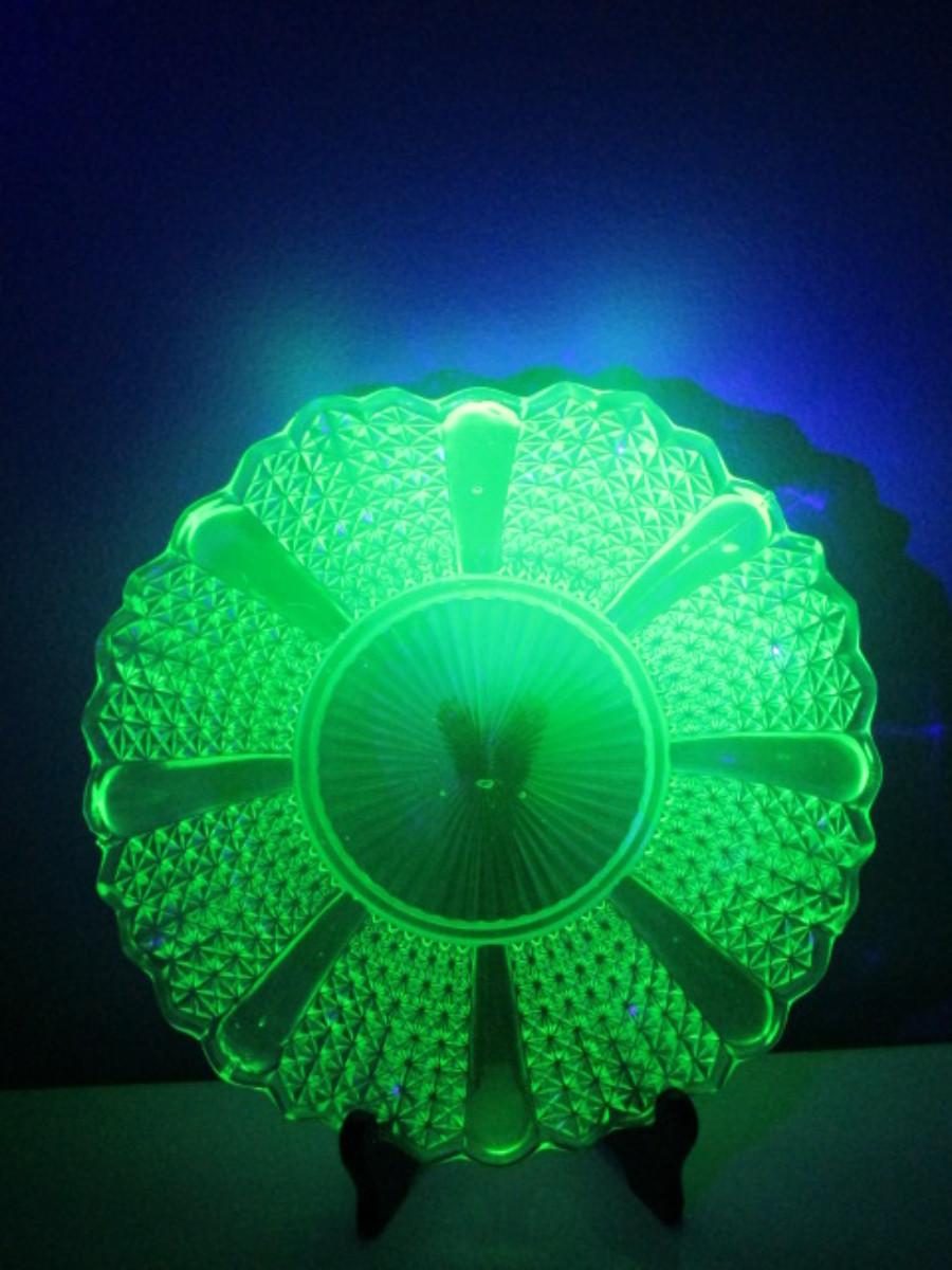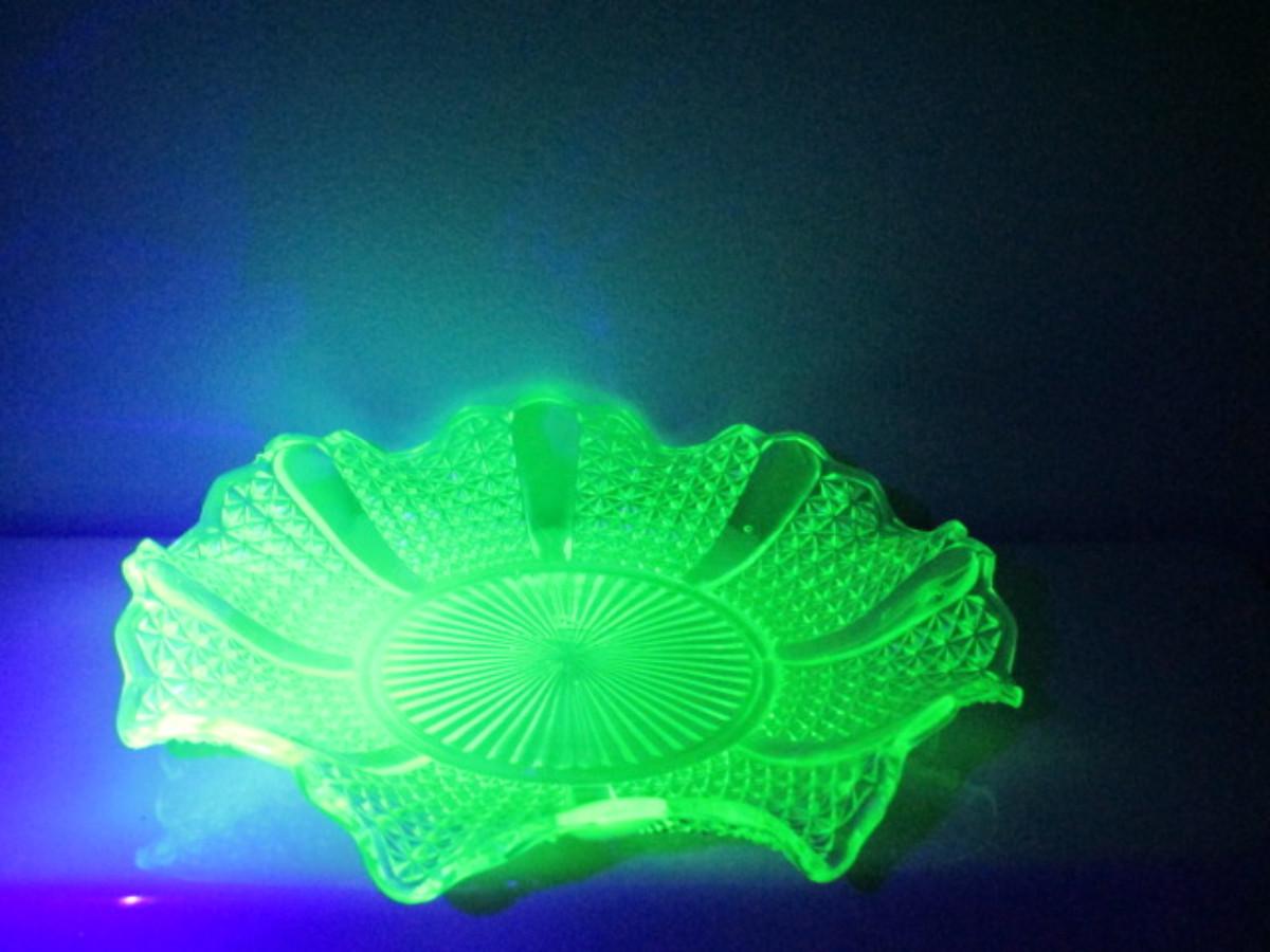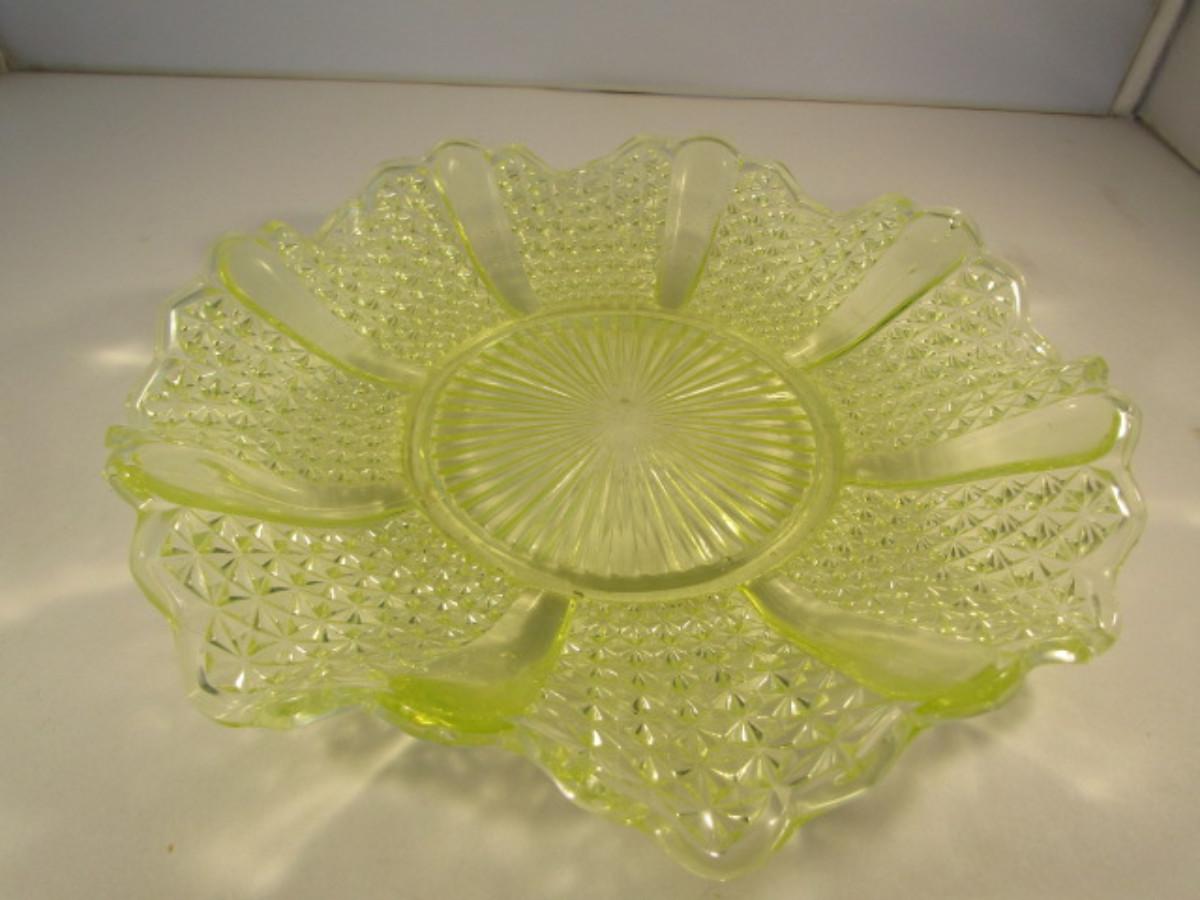 Vintage Vaseline Glass Bowl with Ruffled Edge- Approx 10 1/2" in Diameter