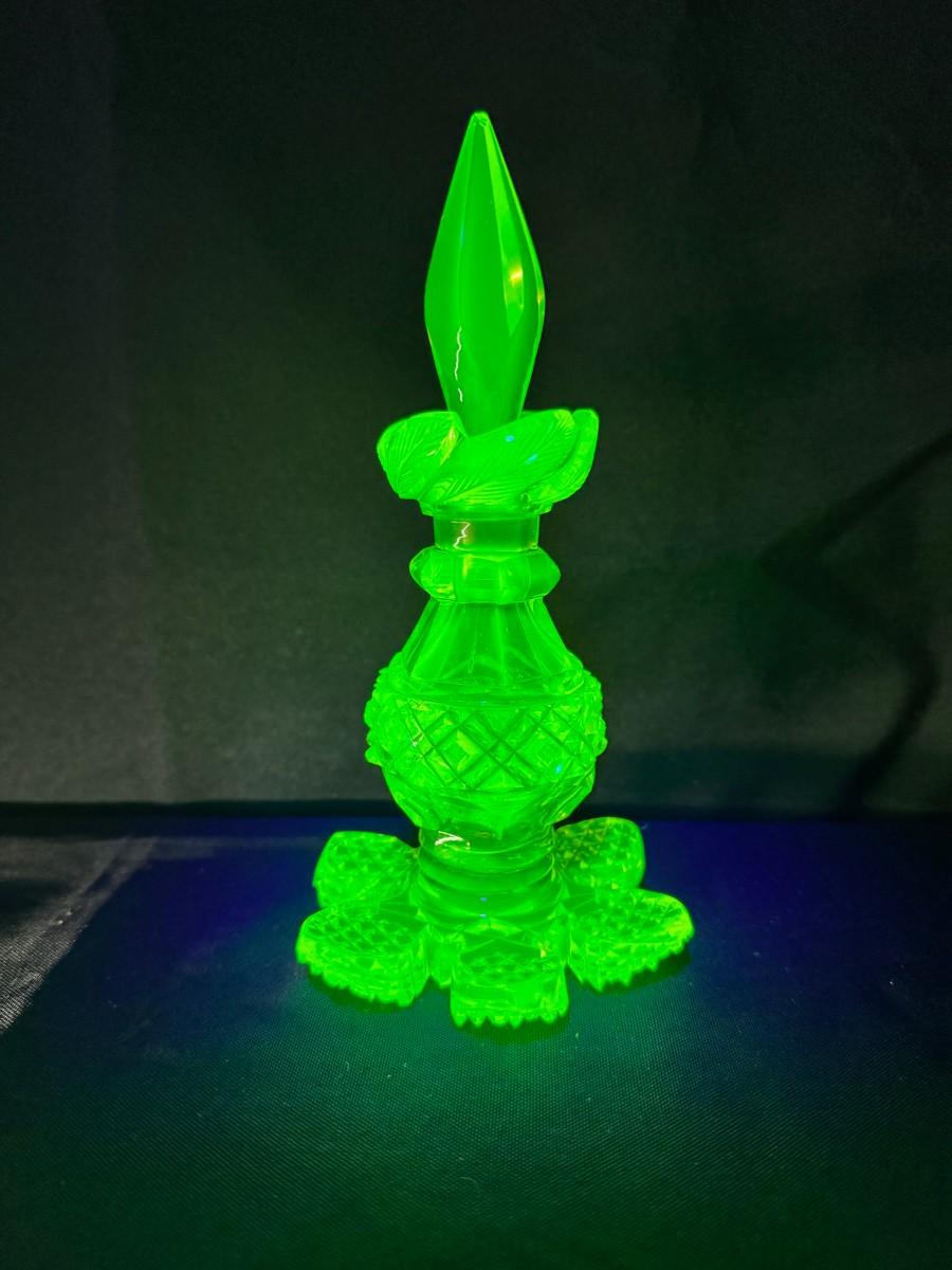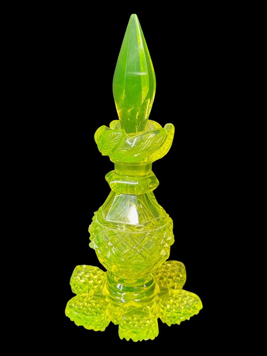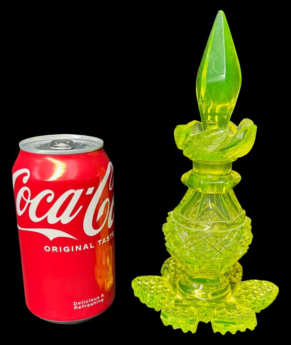 Vintage Vaseline Glass Perfume Bottle with Original Stopper