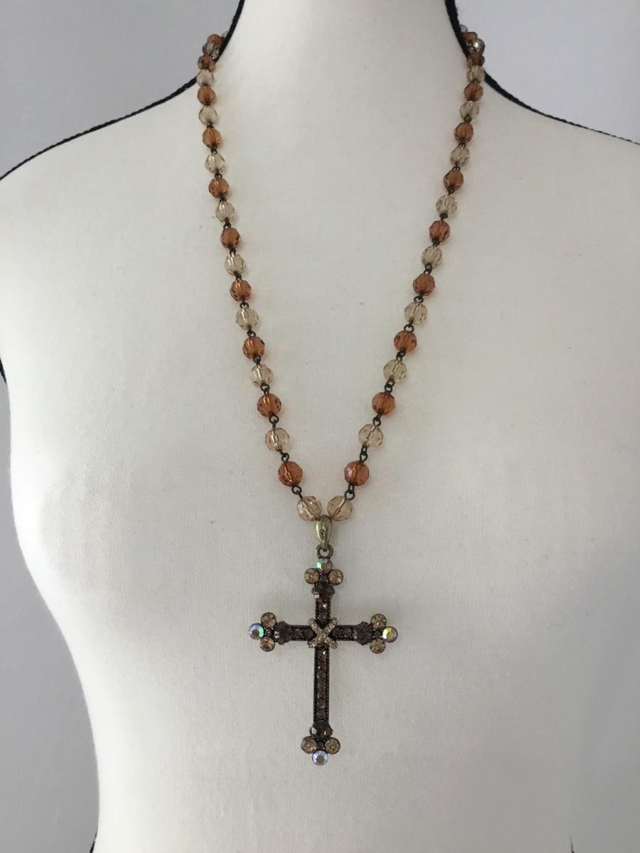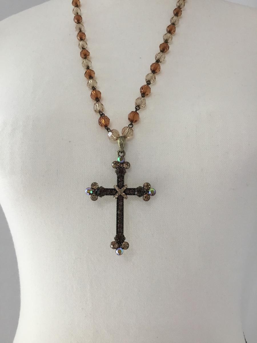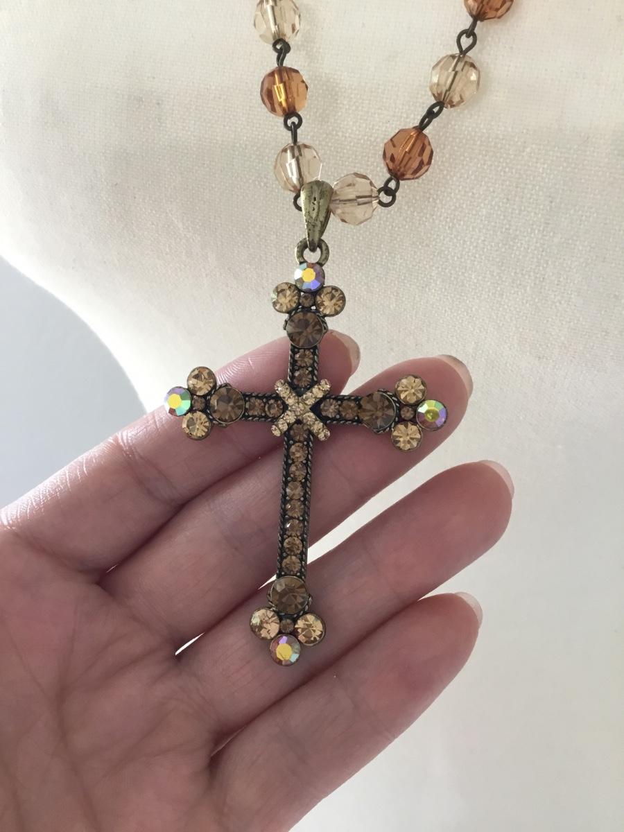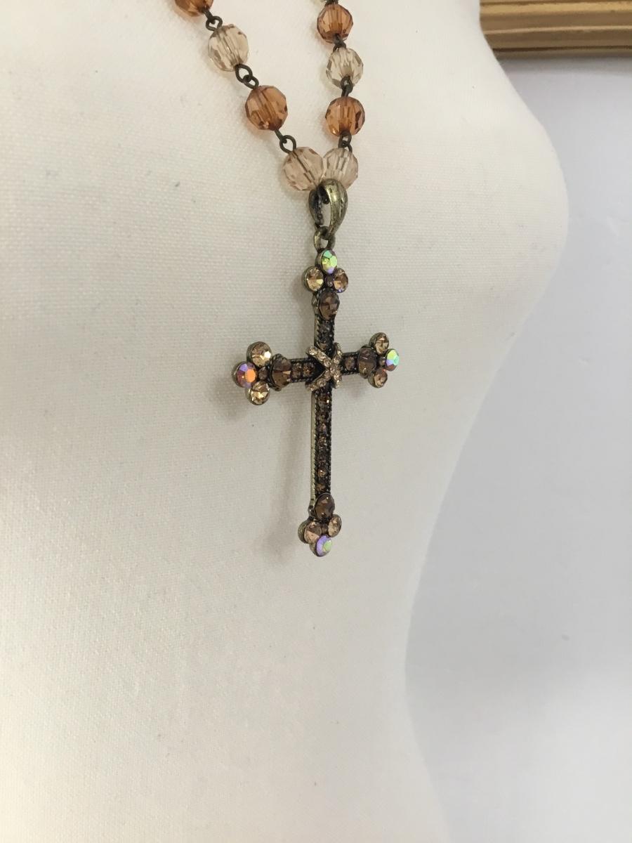 Vintage VCLM Absolutely gorgeous bead necklace was stunning rhinestone cross pendant