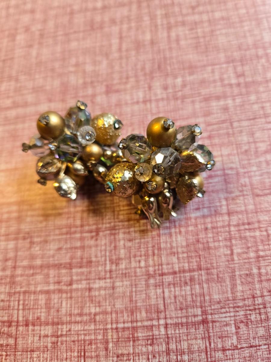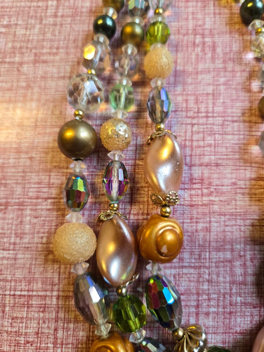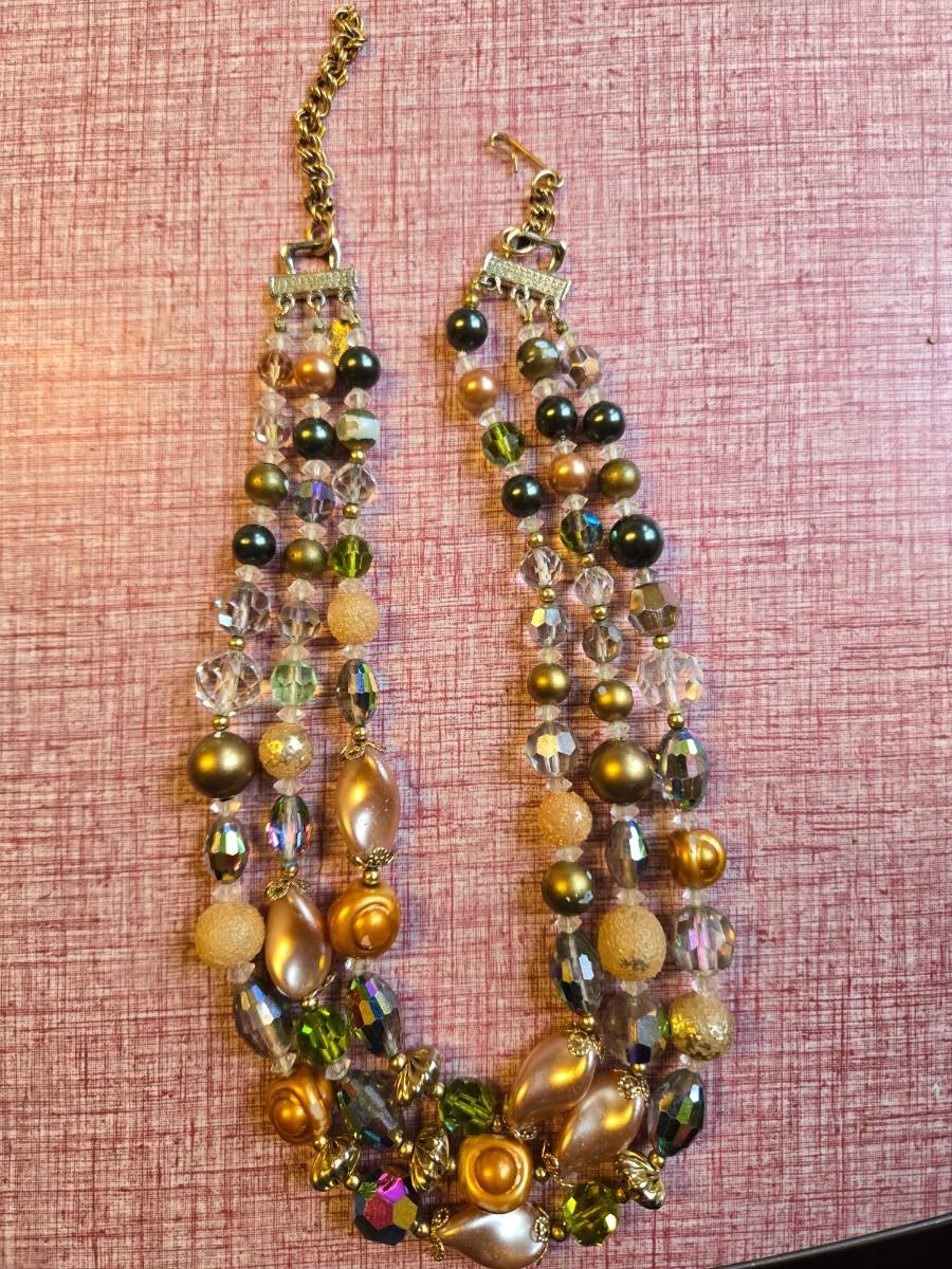 Beautiful 3 strand beaded vintage necklace. Pair of matching clip on earrings.