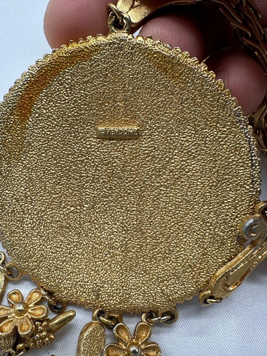 Vintage VENDOME Etruscan Revival White Wash Gold Tone Large Pendant Necklace
