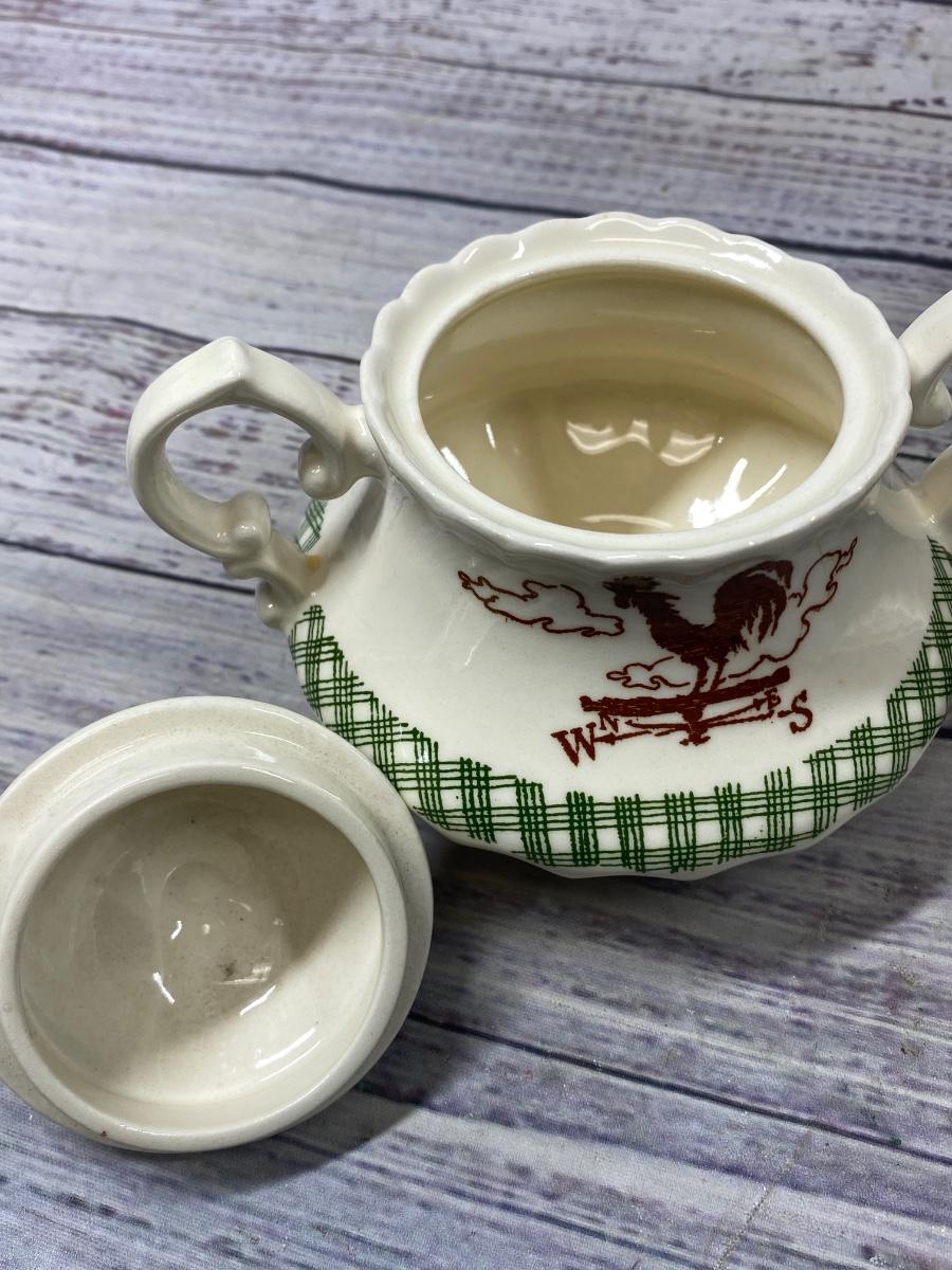 Vintage Vernon Kilns RFD Rooster Weathervane Country Farmhouse Cream Pitcher Sugar Bowl Candy Dish