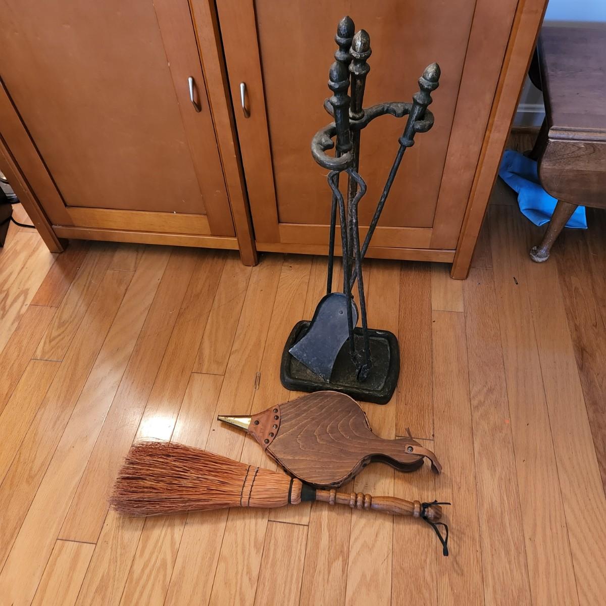 Vintage Very Heavy Fireplace Tools Set with Stand