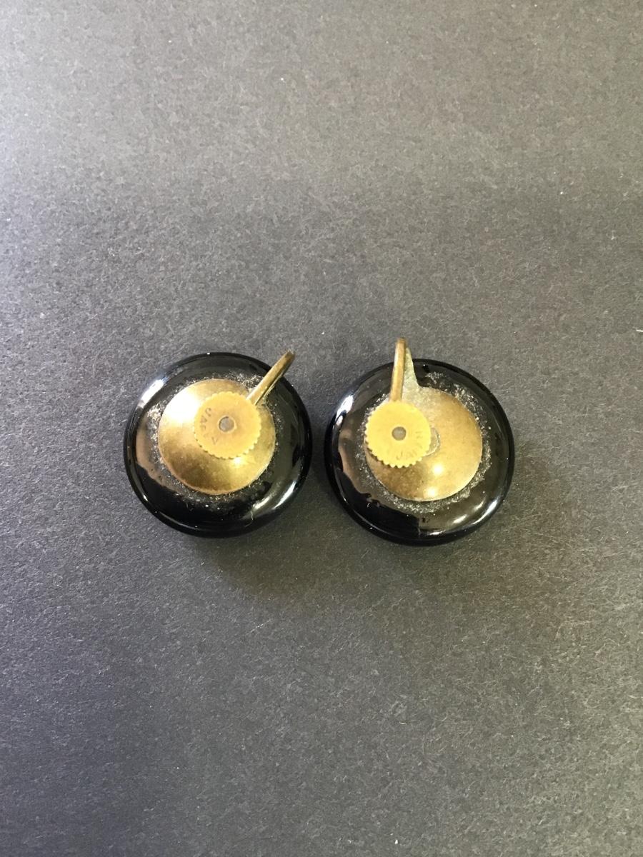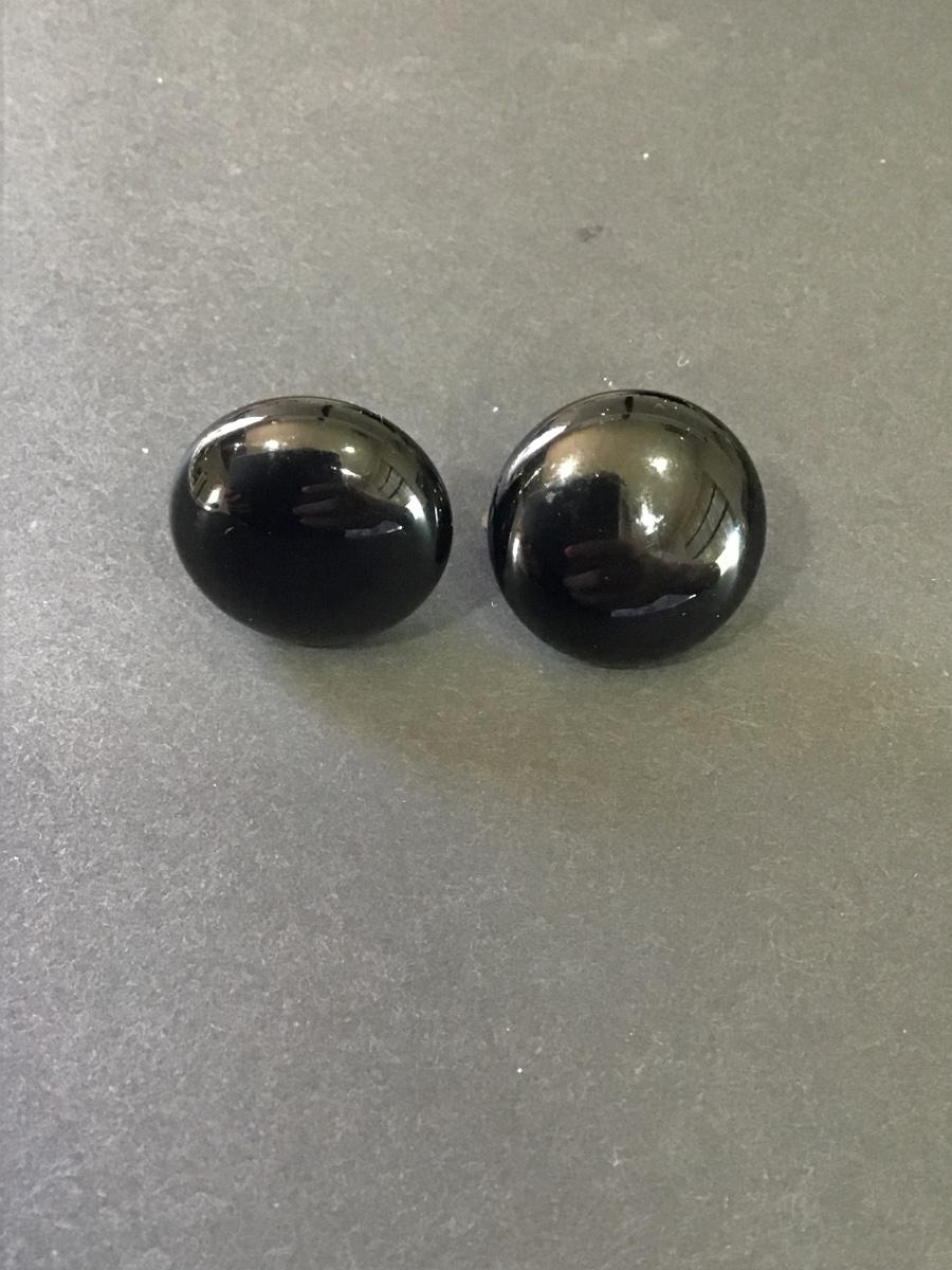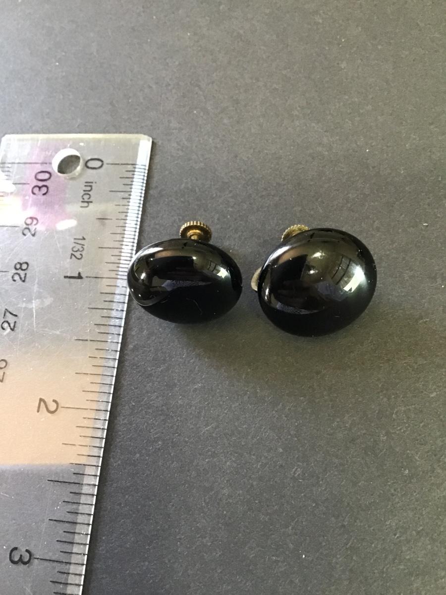 Vintage very nice black glass black onyx type screw back earrings, antique Japan