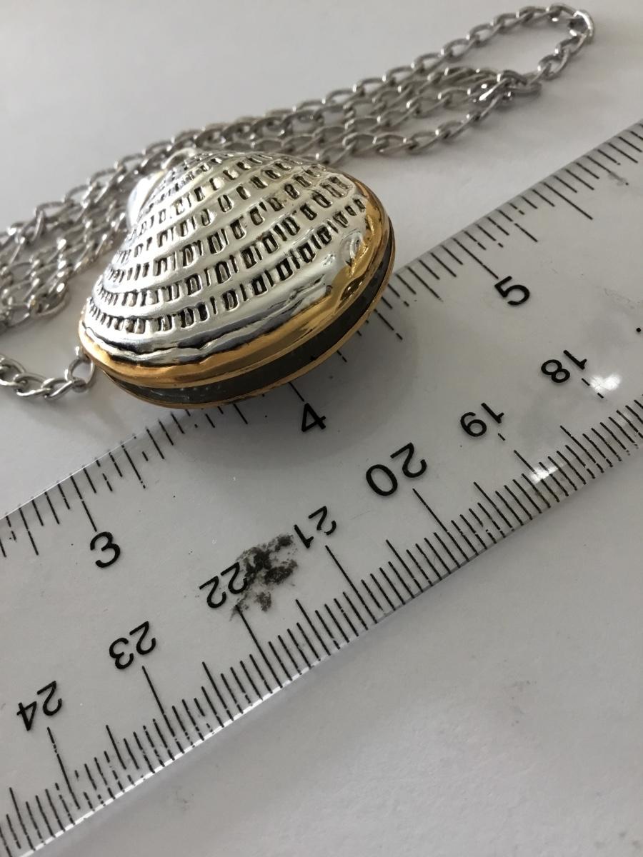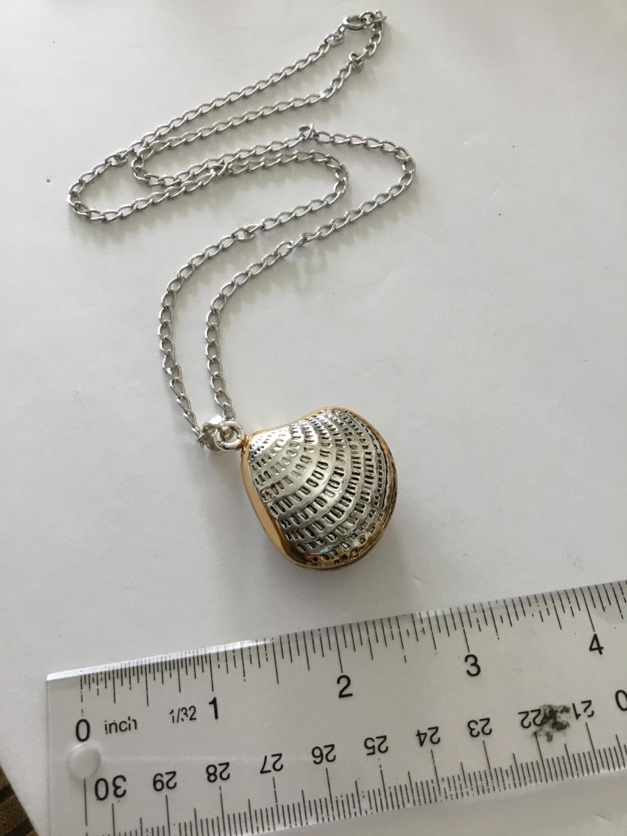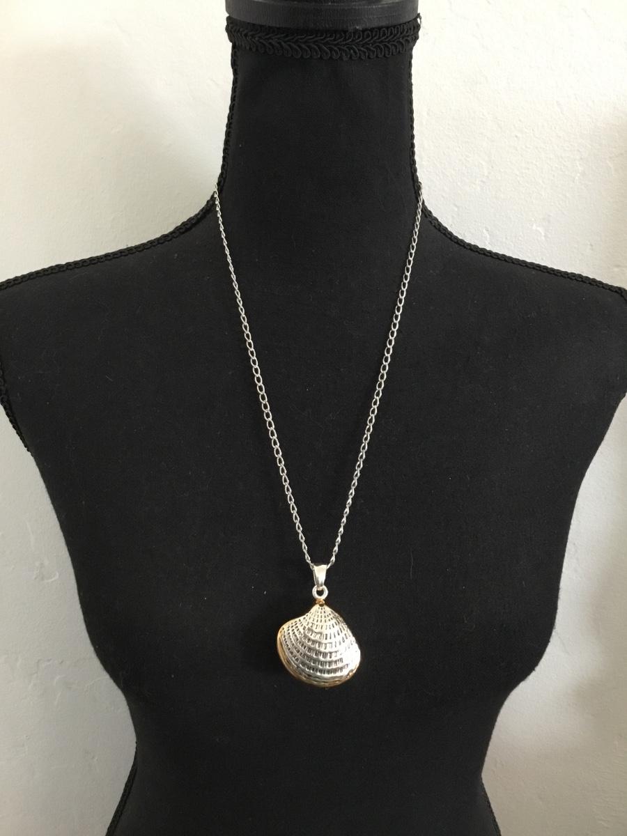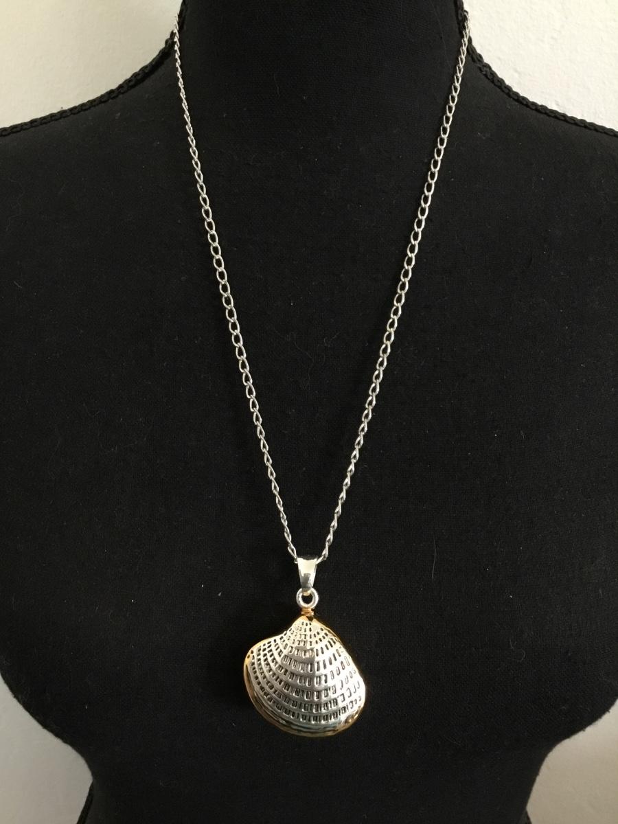 Vintage very nice, silver and gold tone clam shell pendant necklace