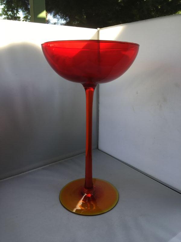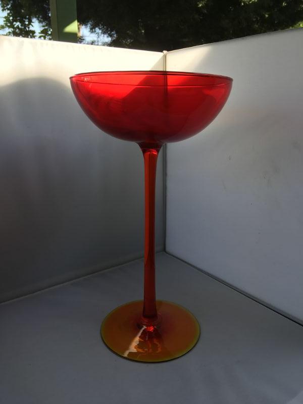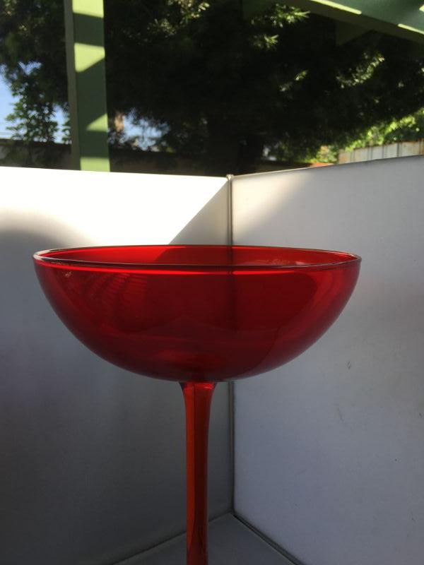 Vintage Very Tall Mouth Blown Hand Made Red Glass
