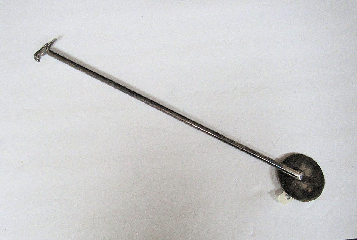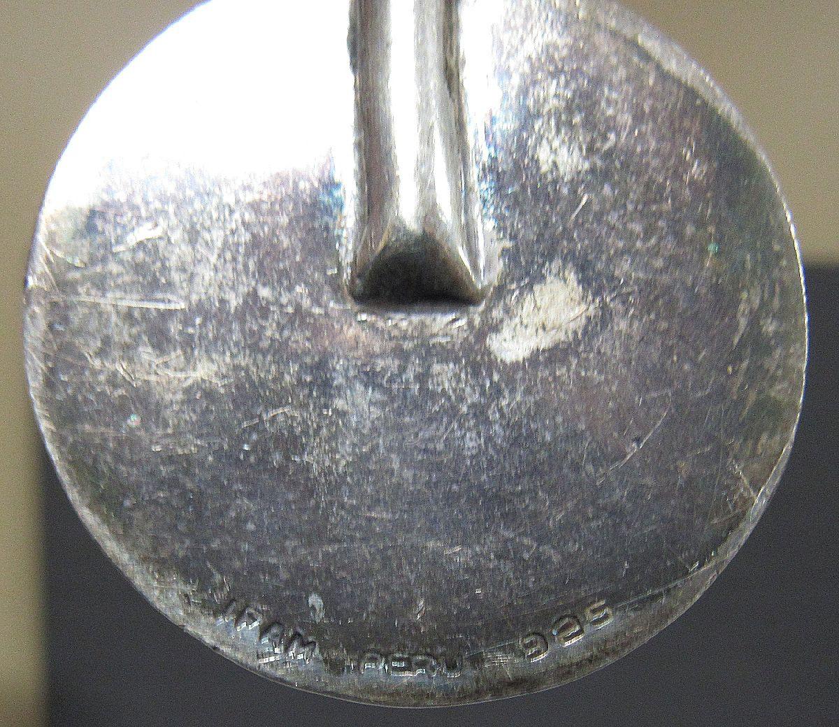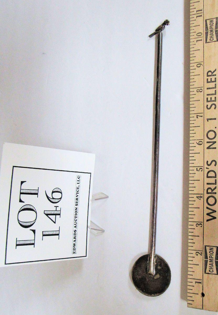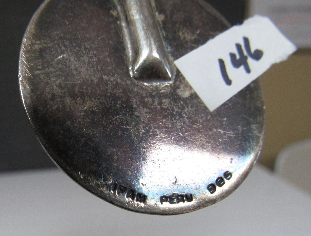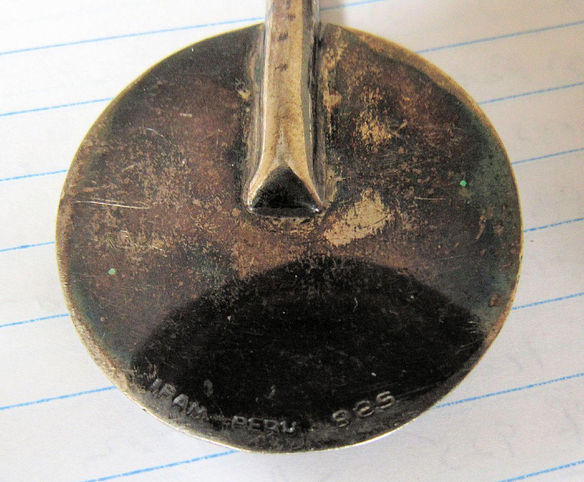 Marked Ifam Peru 925 on the bottom of the disk. There is a bird on top. It is not a straw. I think it might be a drink stir stick. It is 11" tall. Needs cleaning and polishing. Shipping is available at shipping cost plus $5.00 handling fee on one box, $10.00 handling fee on two boxes, $15.00 handling fee on 3 boxes. Helps cover shipping materials and labor cost.