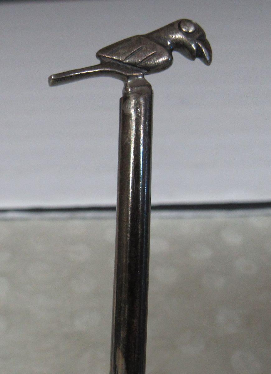 Vintage Very Unusual 925 Silver Peru Drink Stirrer, 11" Tall, Bird on Handle