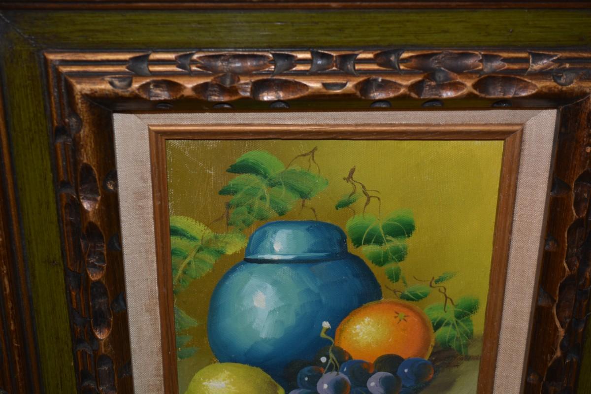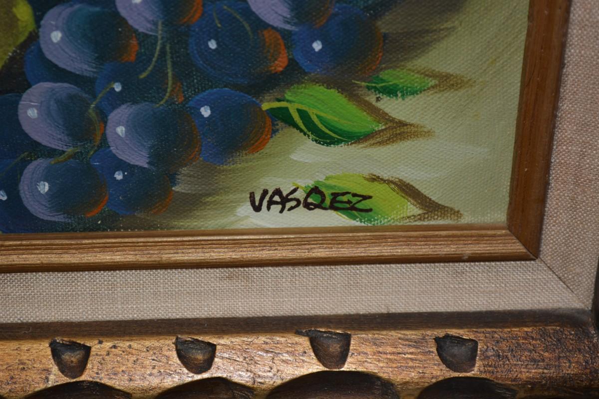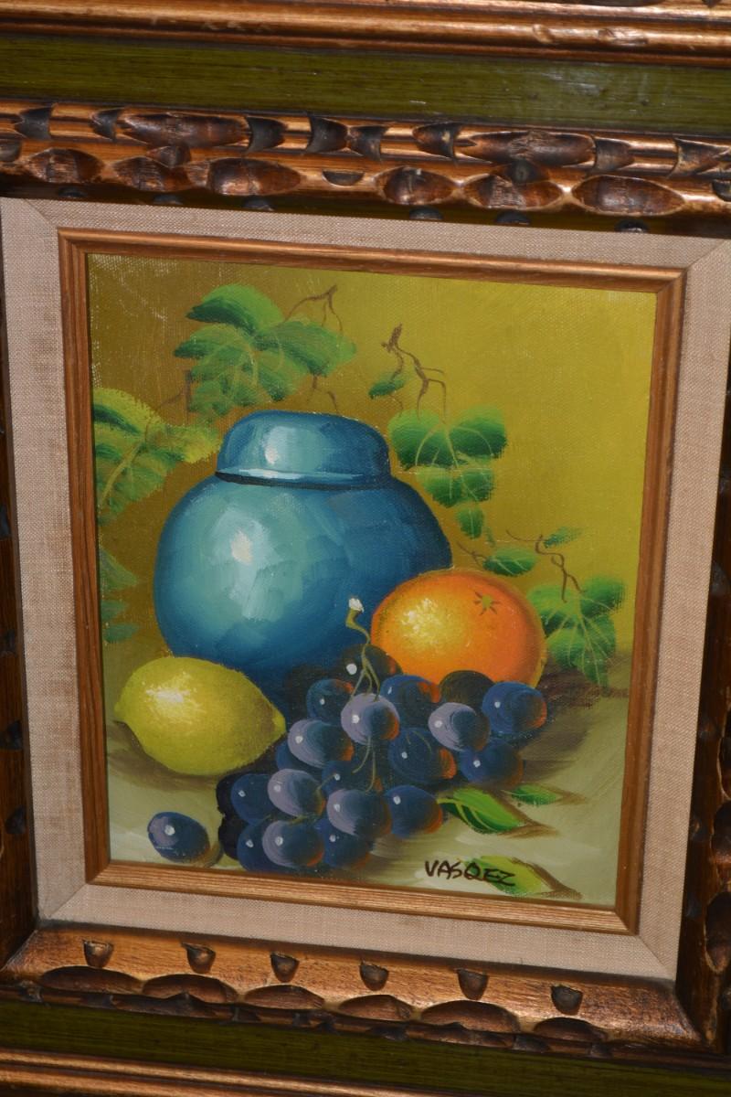 Vintage Vibrant Fruit Still Life Signed Vasquez in Ornate Wood Frame