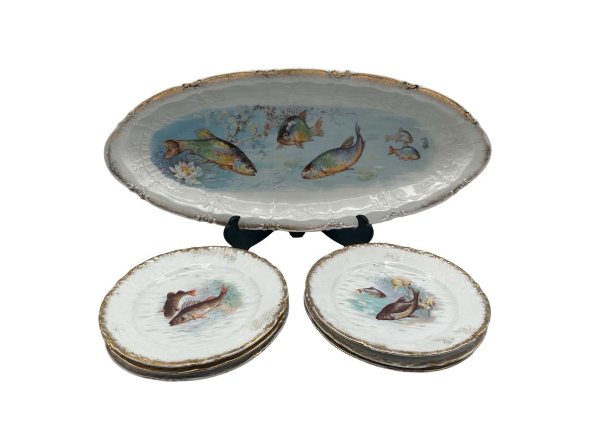Vintage Victoria Carlsbad Austrian Porcelain Fish Plates & Platter