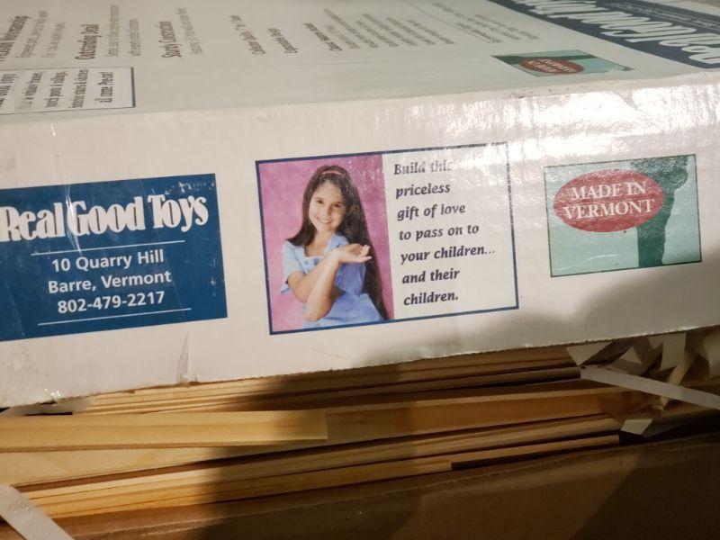 Vintage Victoria Farmhouse Dollhouse. 8 room wood dollhouse. 34 1/2"w x 25"d x 33"h/ Made in 1999 in Vermont. Unused. Model # MM-1065. Real Good Toys. Lot #0021