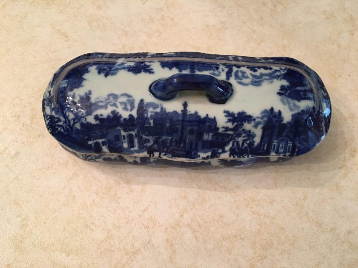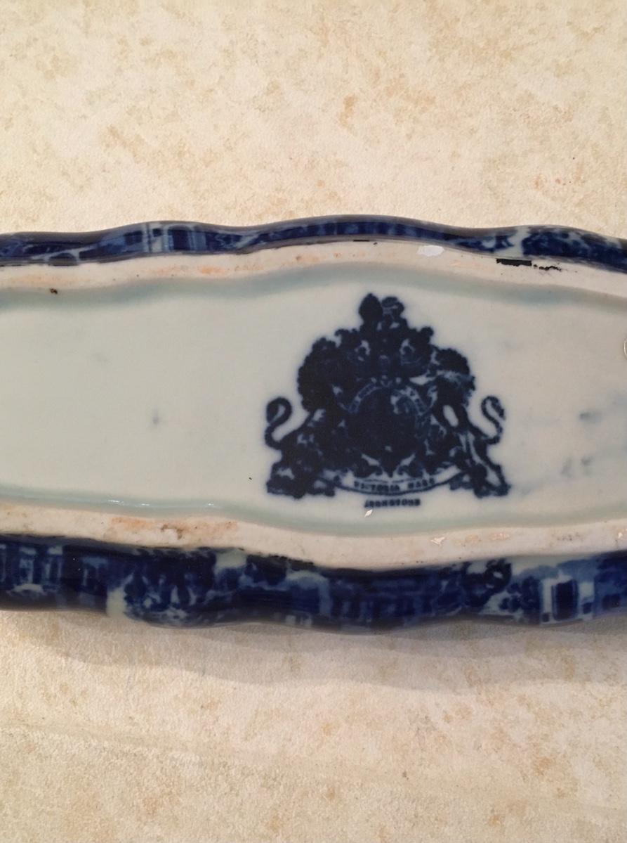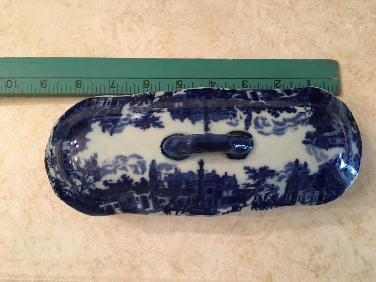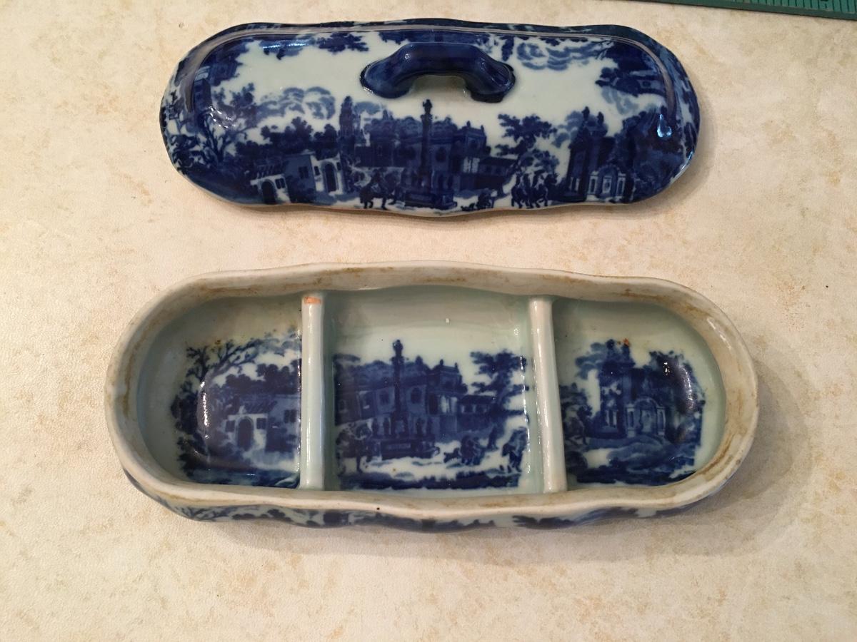 Victoria Transferware Ironstone Divided Covered Trinket Dish Vintage Flow Blue.