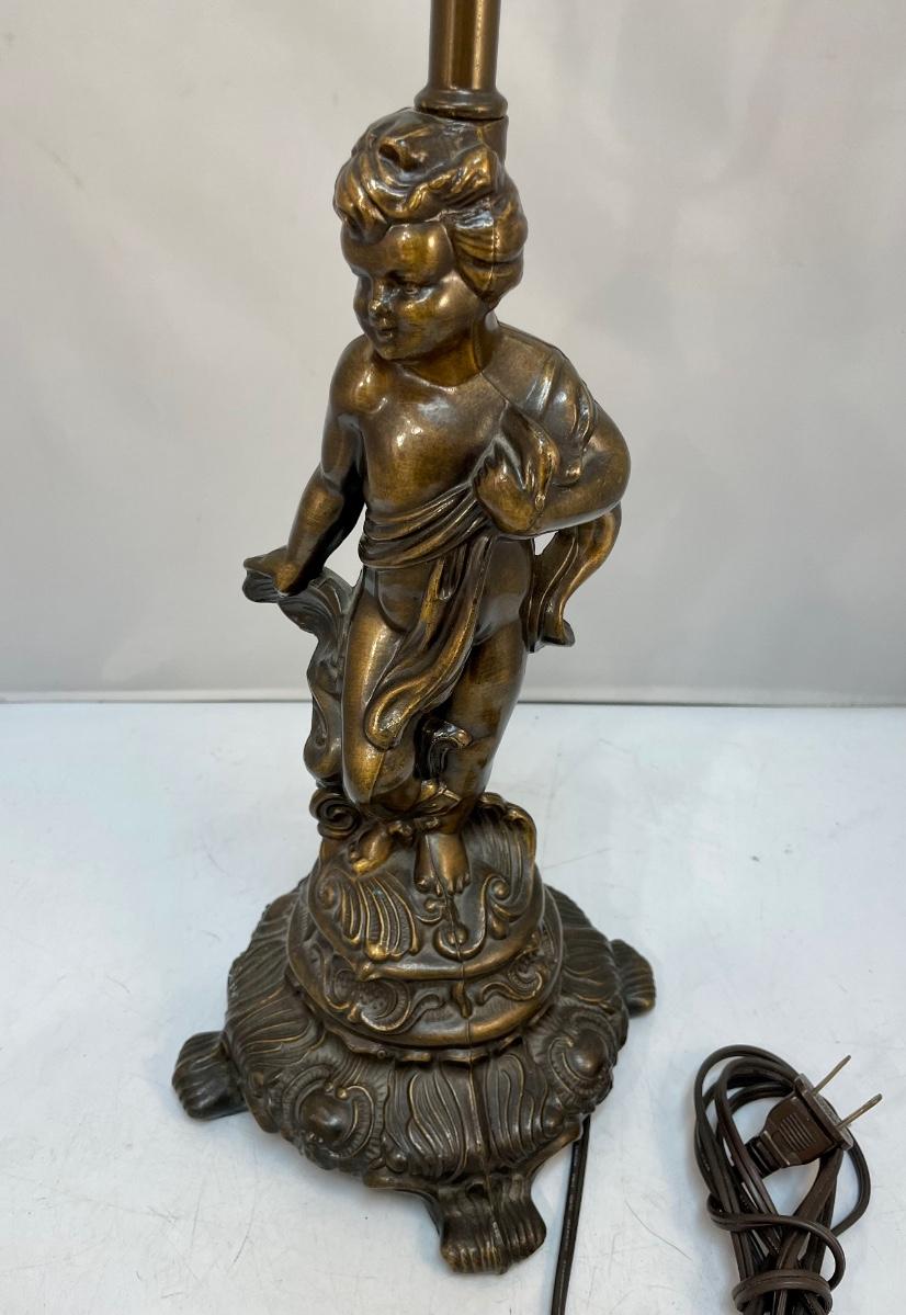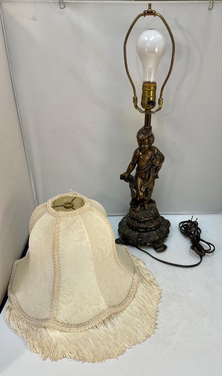 Vintage Victorian Brass Figurine Table Lamp. Lamp shade is in excellent condition.