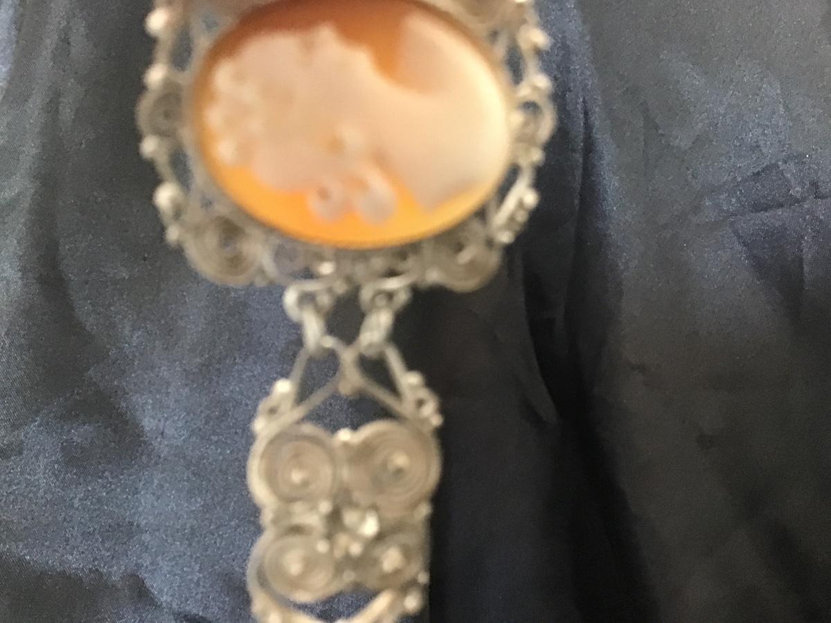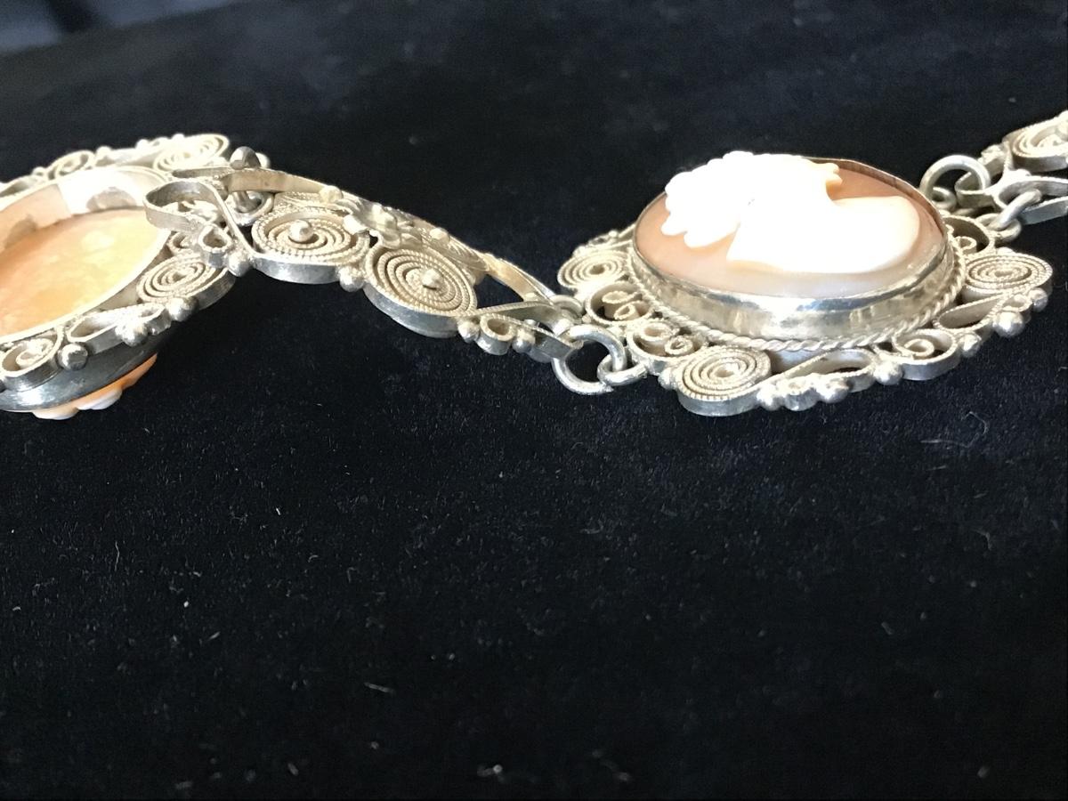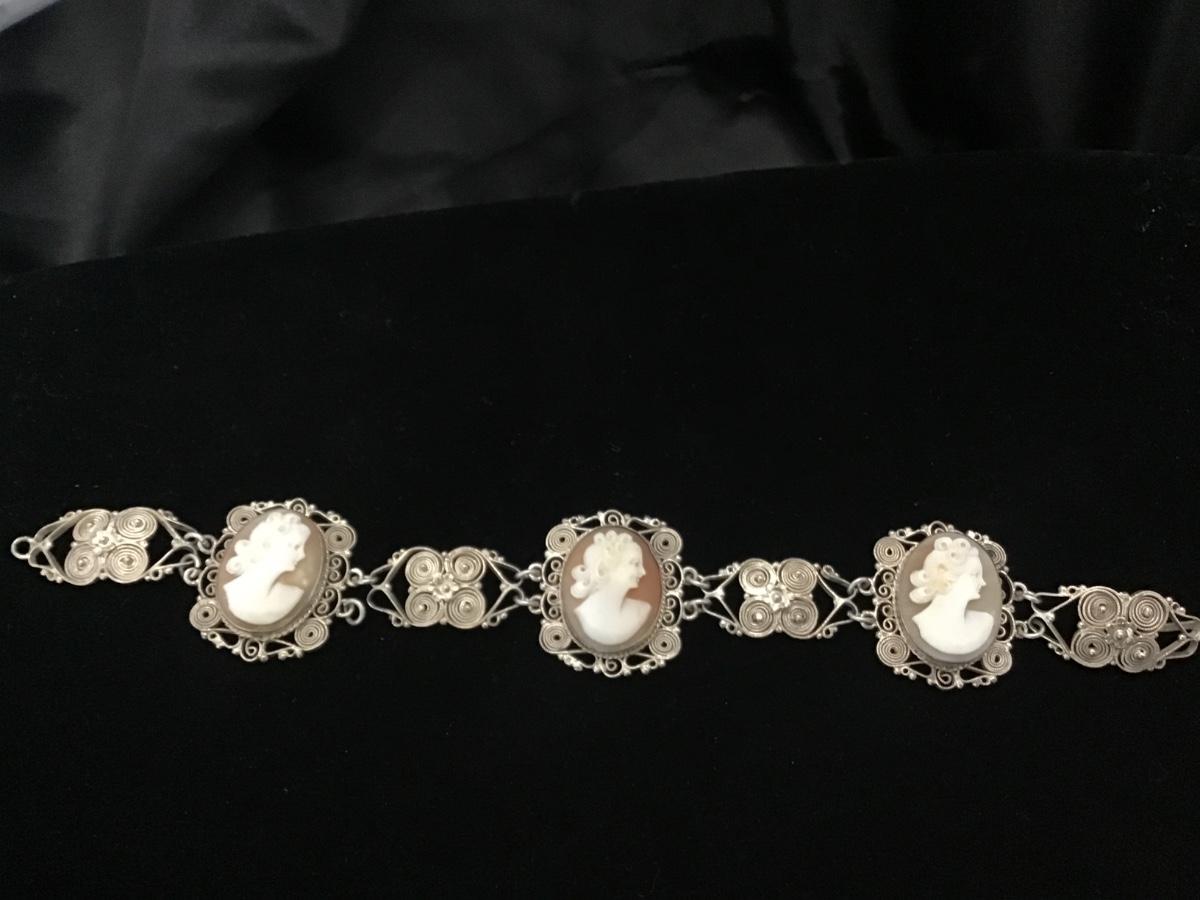 Vintage Victorian Cameo Pendant Bracelet scrolled Silver Marked Shell Cameos