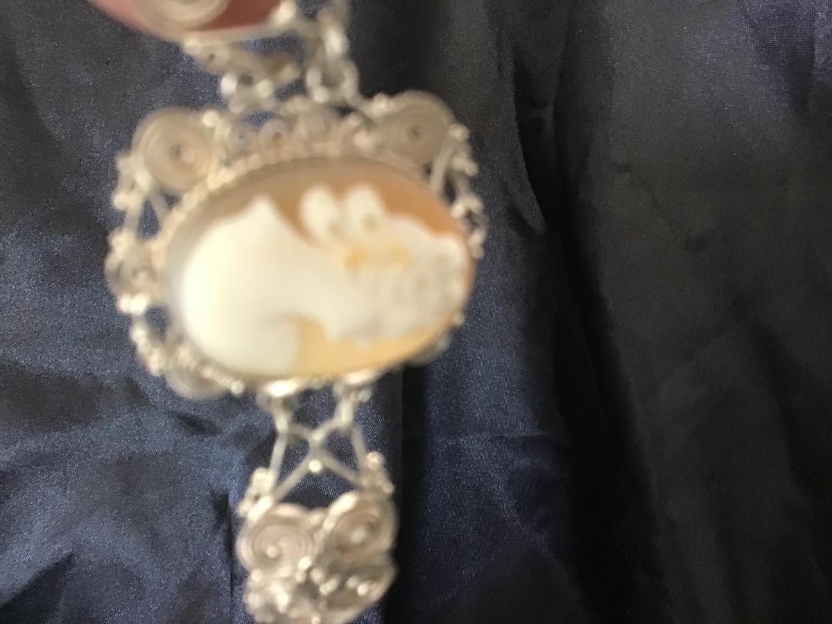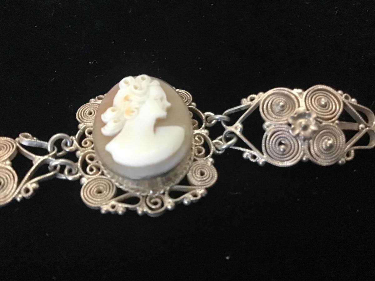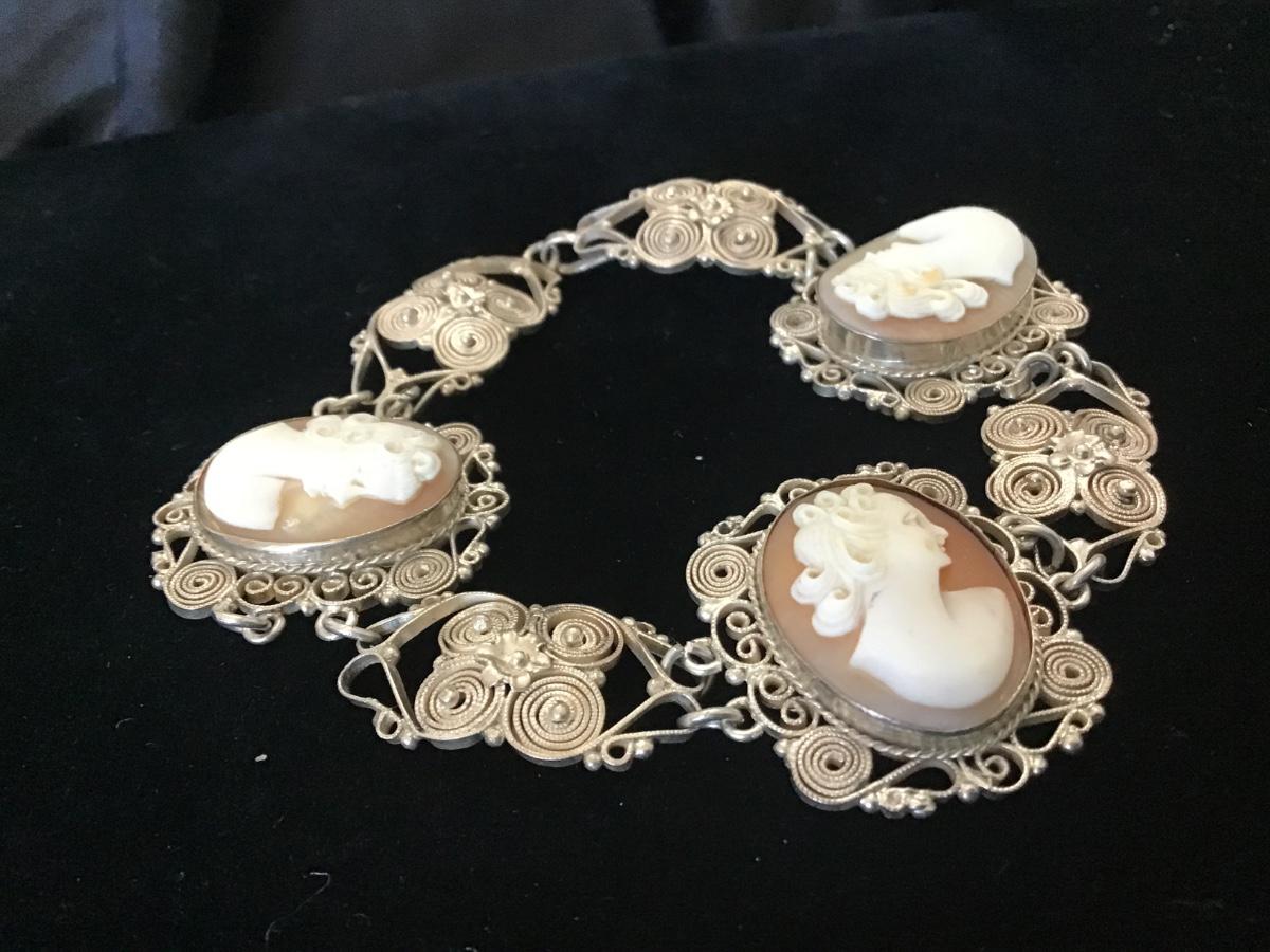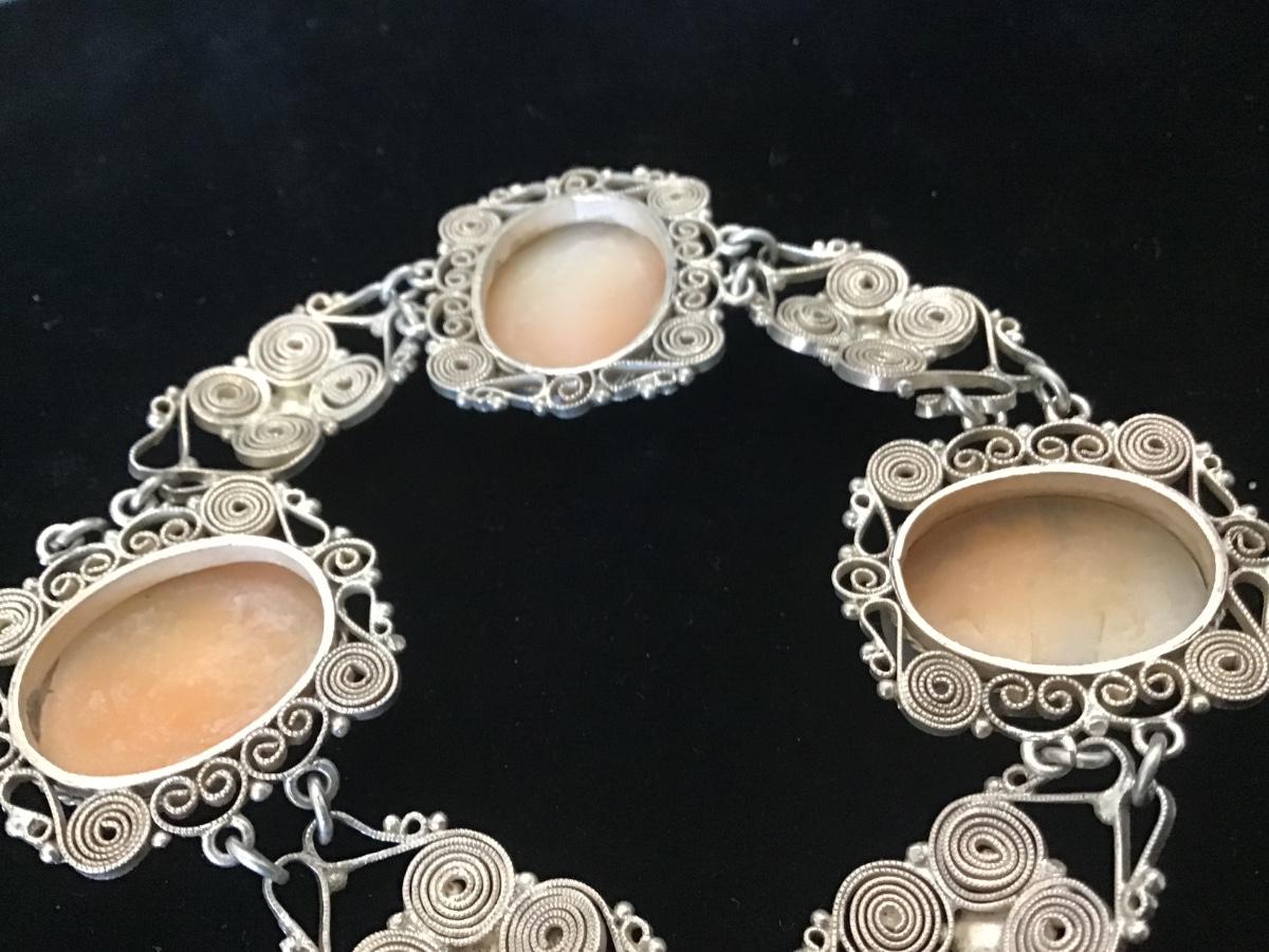Vintage Victorian Cameo Pendant Bracelet scrolled Silver Marked Shell Cameos