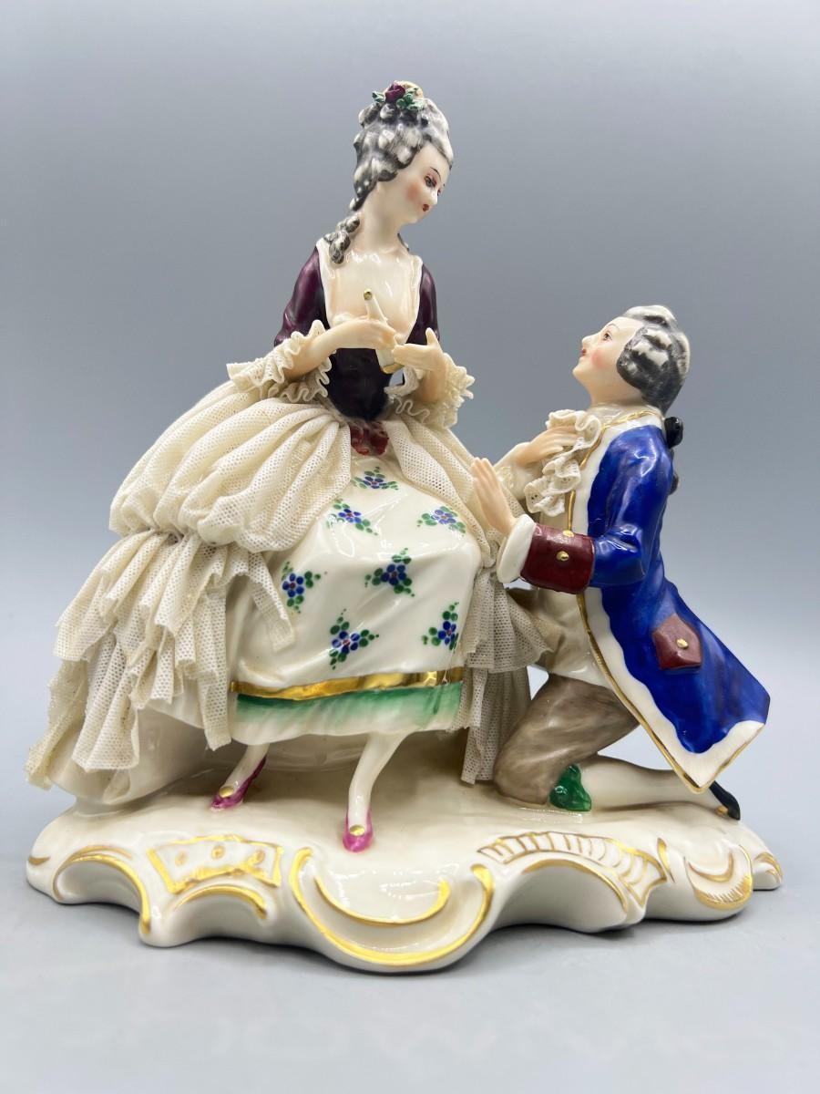 Vintage Victorian Couple Courting Romantic Porcelain Decorative Figurine