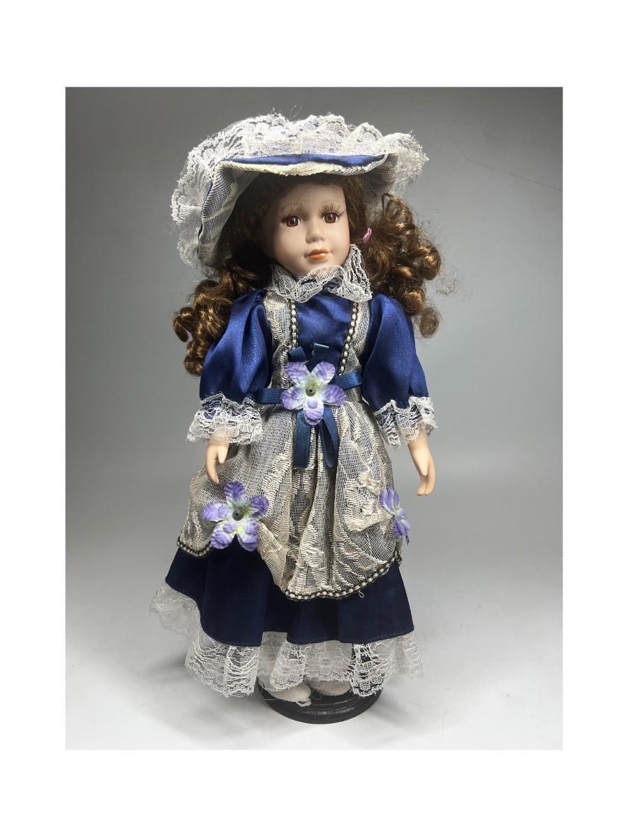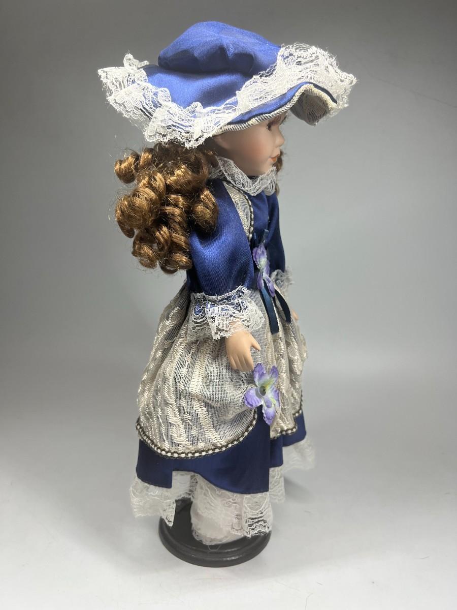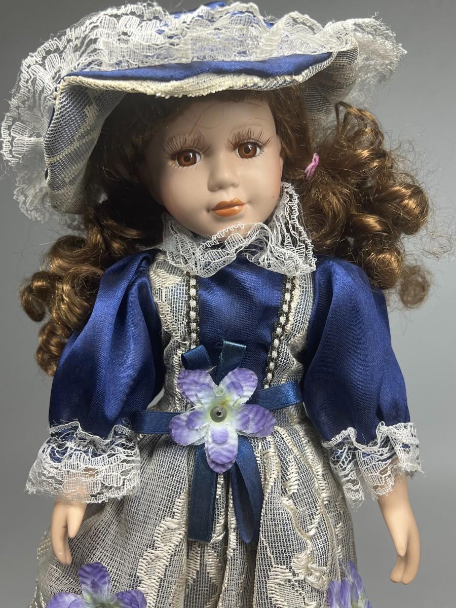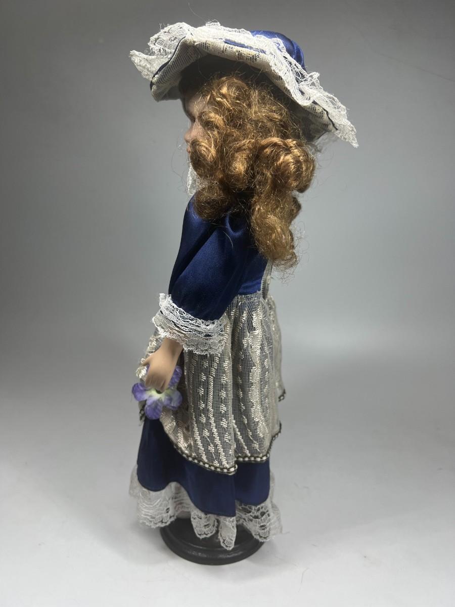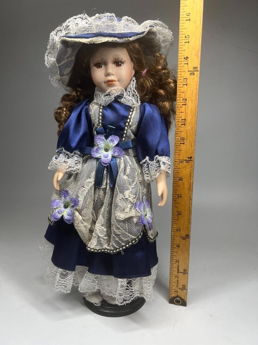 Vintage Victorian Dressed Porcelain Collector Doll with Stand