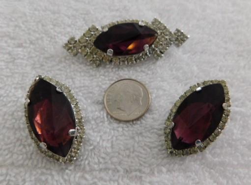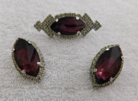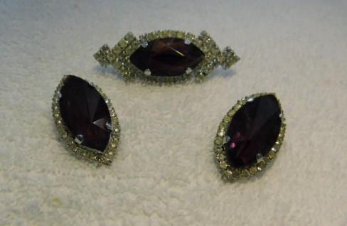 Vintage Victorian Pin and Earring Set with Marquise Cut Amethyst
