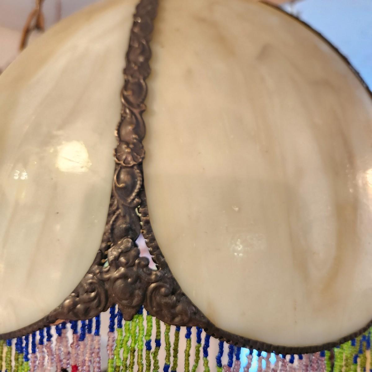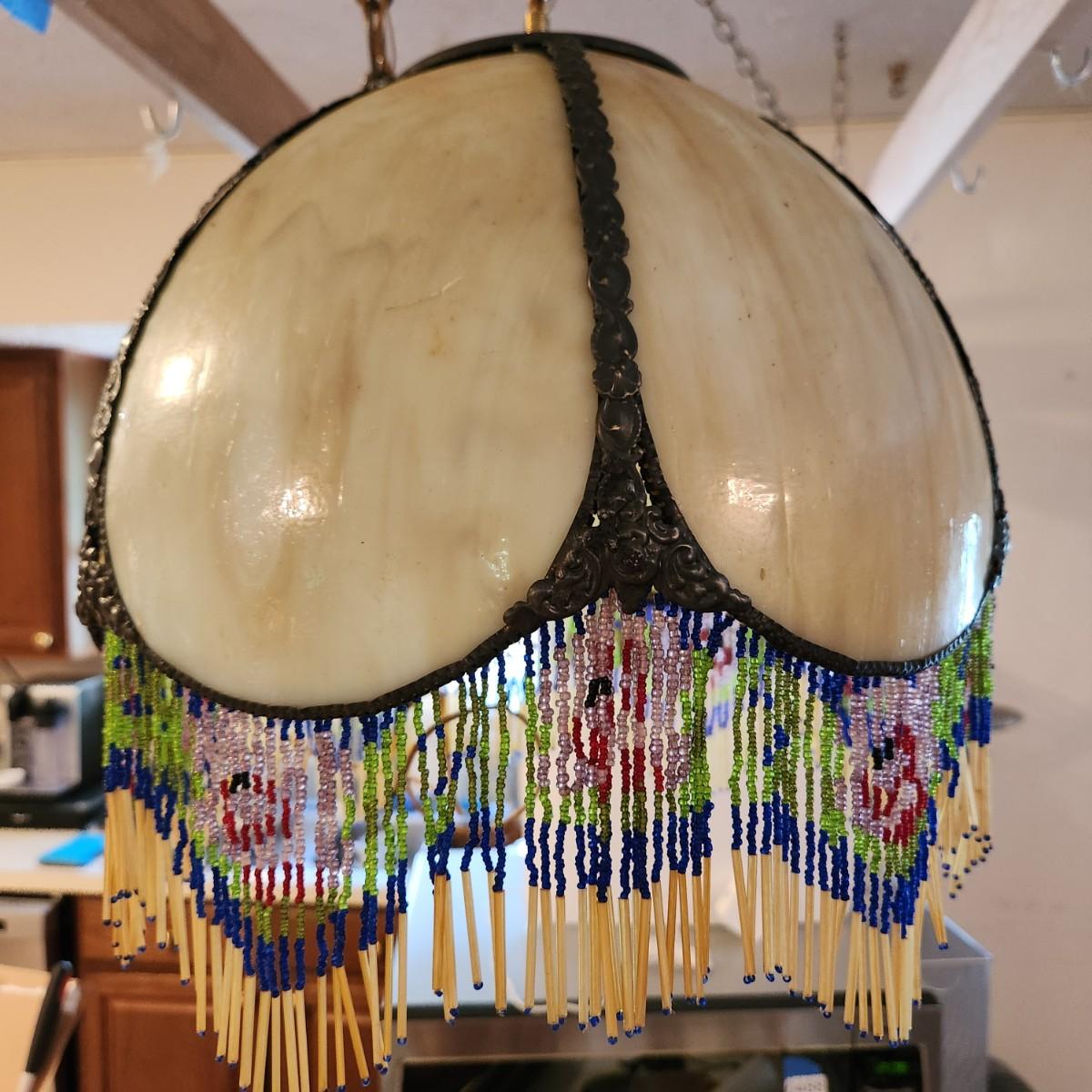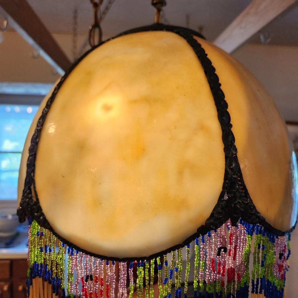 Vintage Victorian Slag Stained Glass Hanging Light Shade 6 Sided