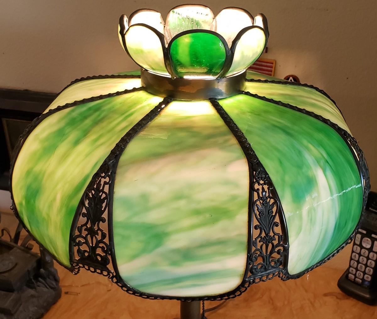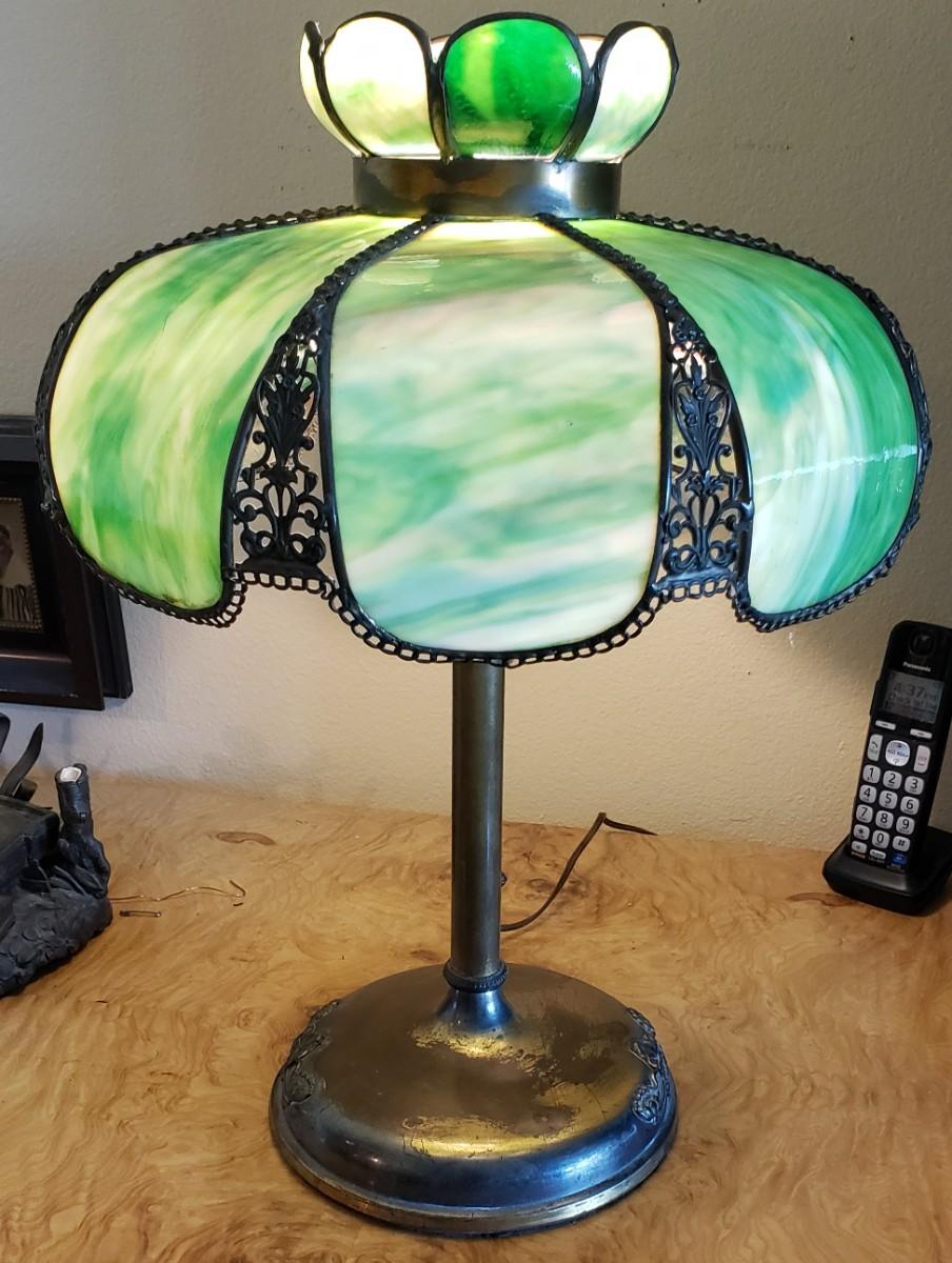 Vintage Victorian Slag Stained Glass Table Lamp