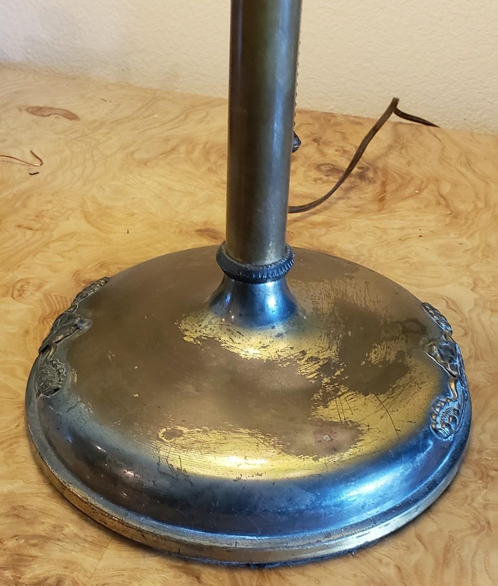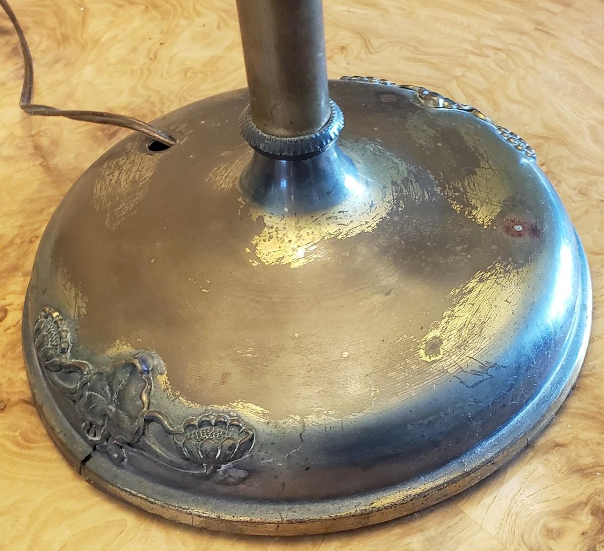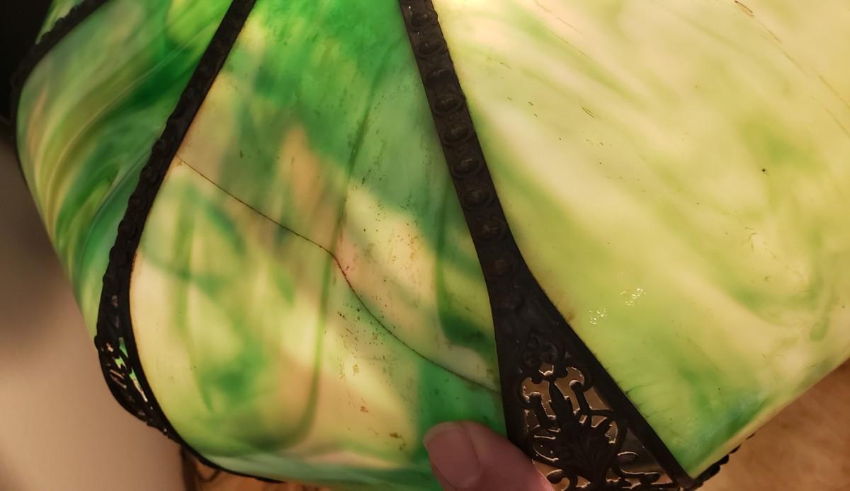 Please review photos as 1 piece of glass is cracked and lamp base shows wear