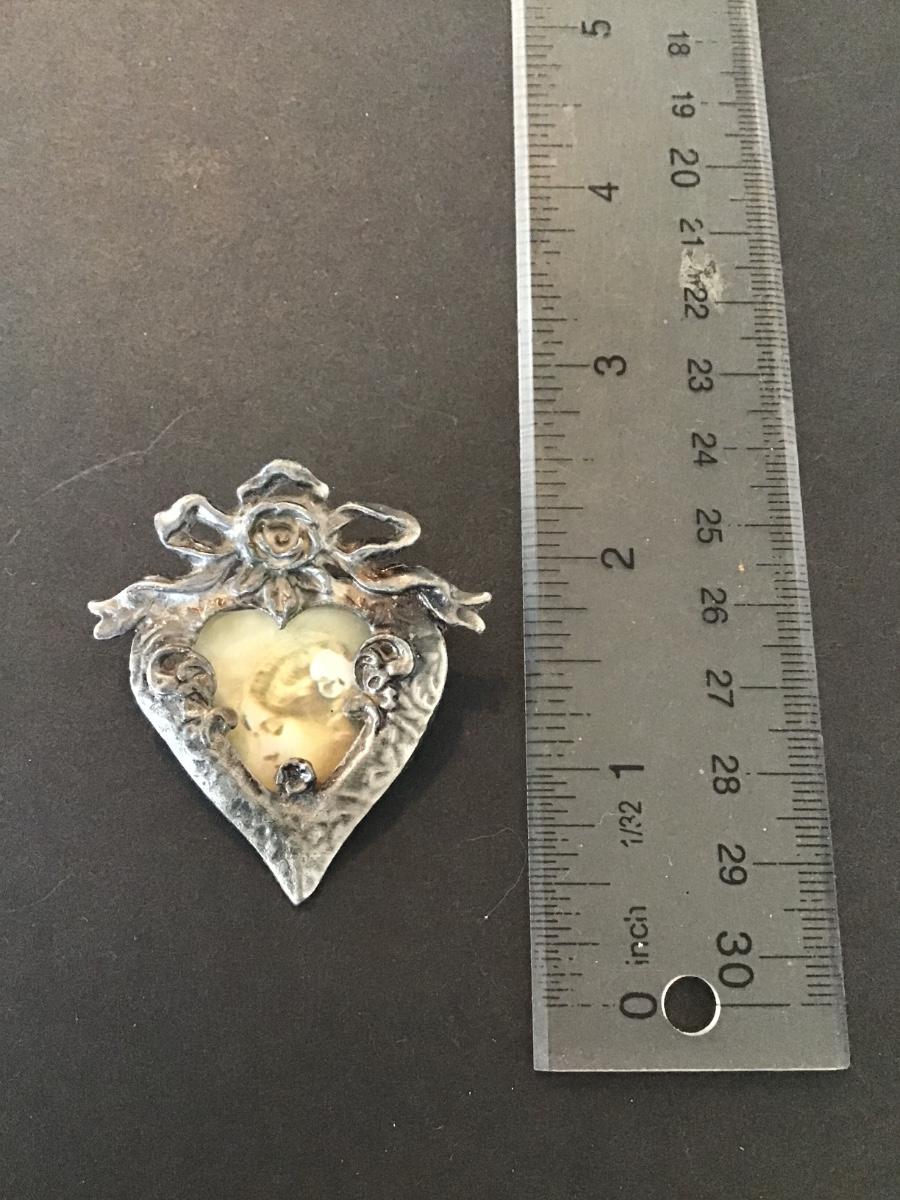 Vintage Victorian Style heart shaped pewter picture frame brooch pin