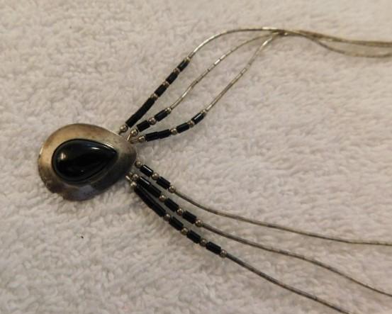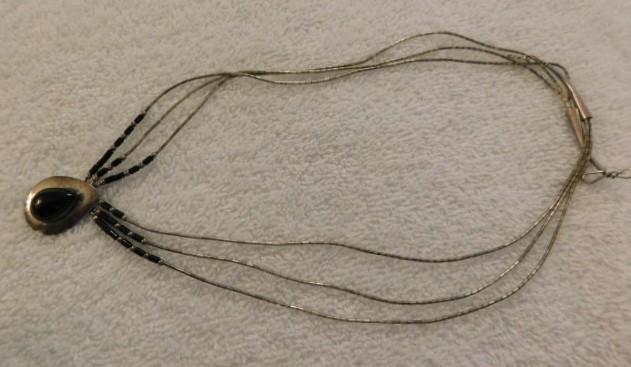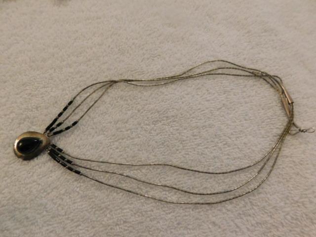 Vintage Victorian Tear Drop Sterling Silver and Stone Triple Cable Necklace