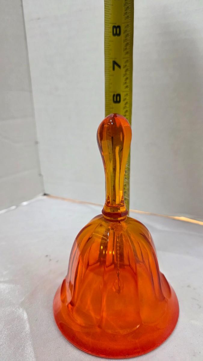 Radiating warmth and timeless charm, this vintage Viking Glass bell showcases the iconic Amberina color transition — a captivating gradient that flows from deep ruby tones into glowing amber. Handcrafted with precision, the paneled design enhances the way light moves through the glass, giving the piece a luminous presence whether displayed on a shelf, within a cabinet, or as part of a curated collection.