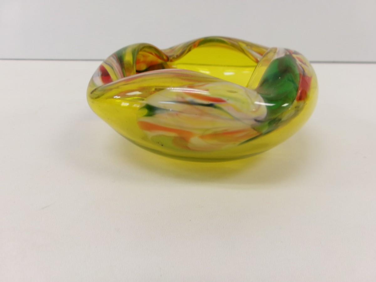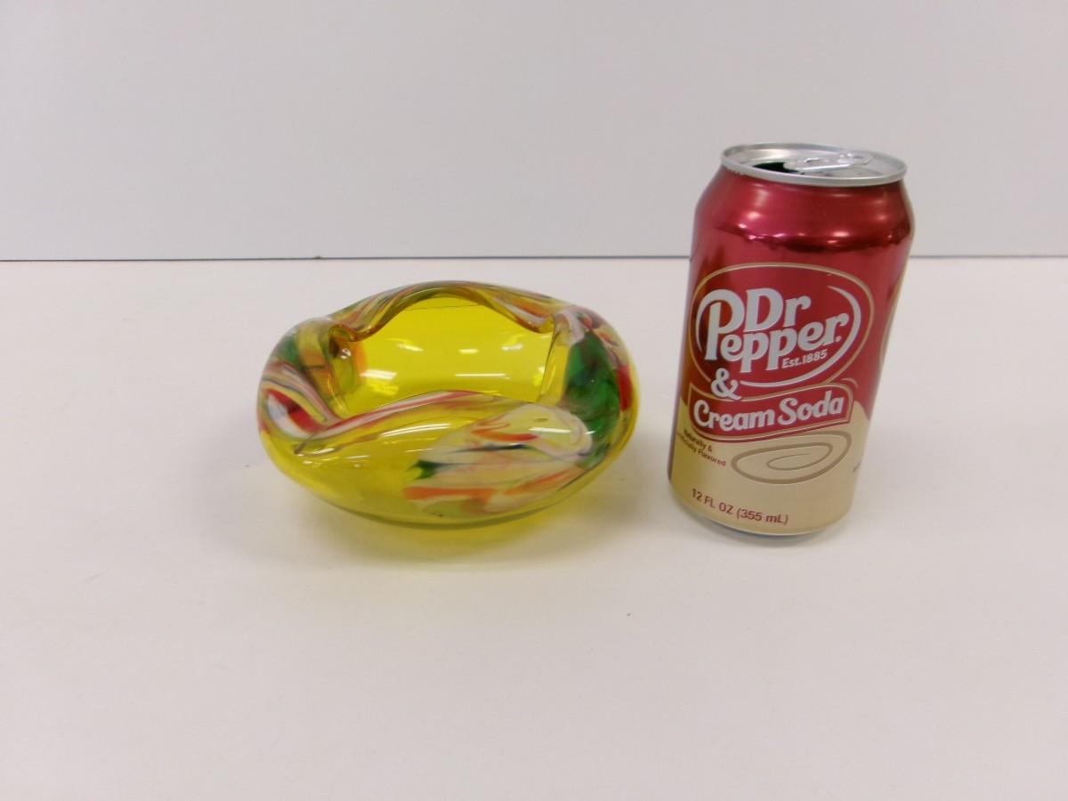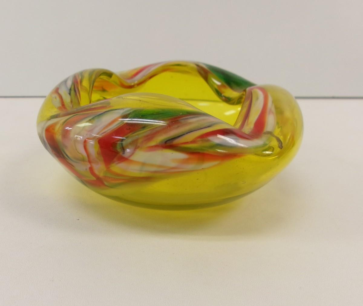 Vintage Venetian Murano Style Yellow Multi Colored Ashtray #38