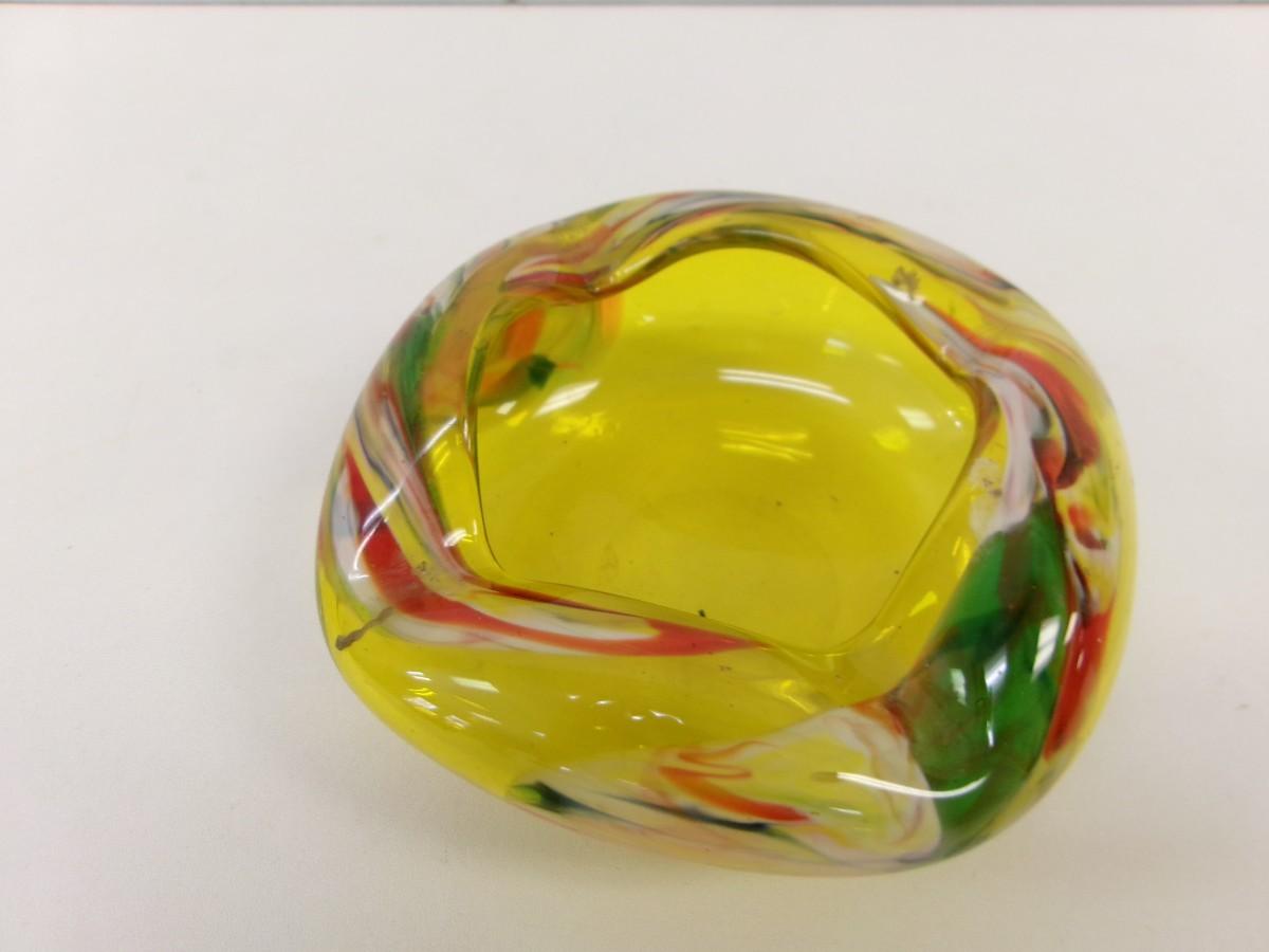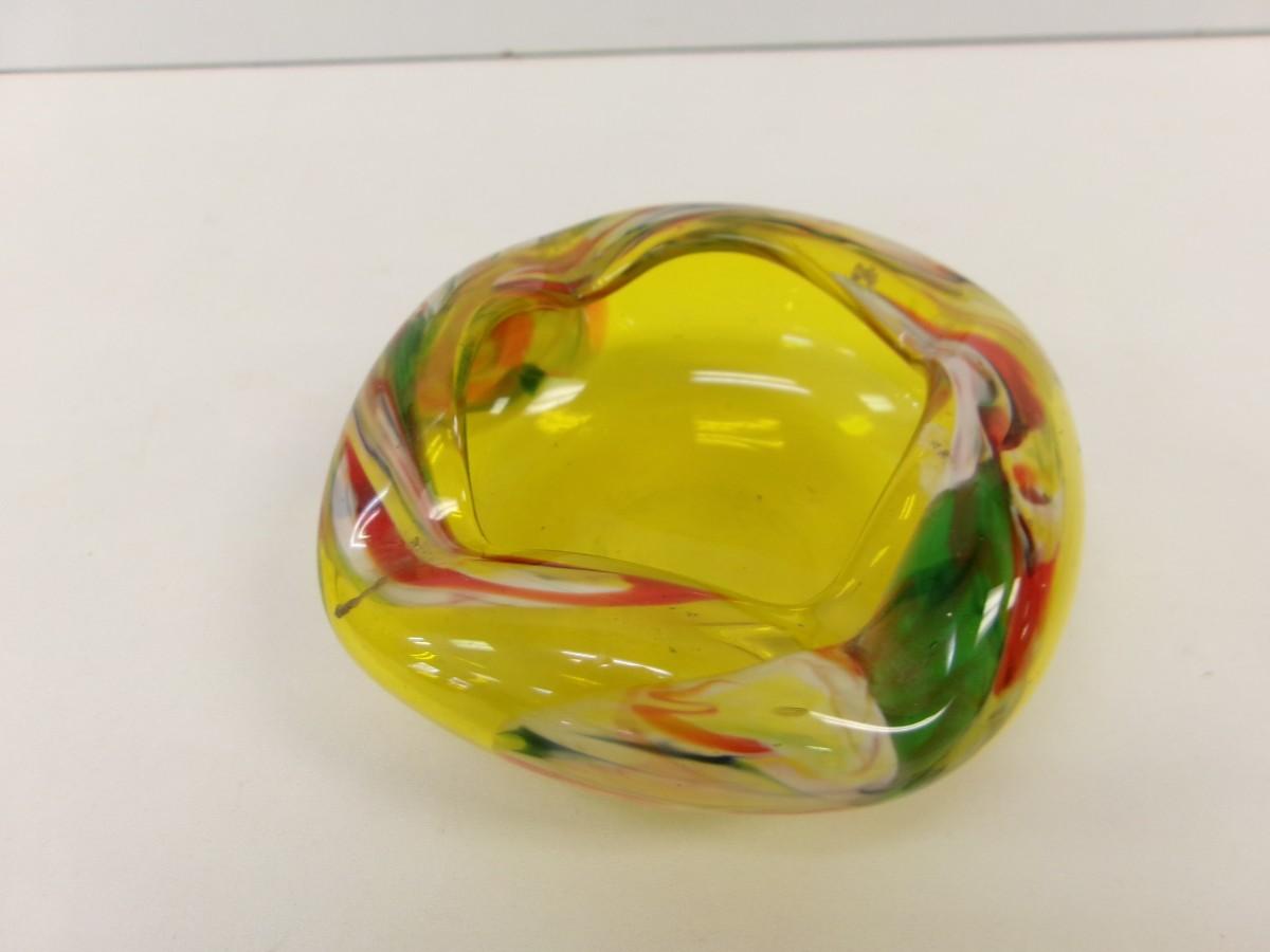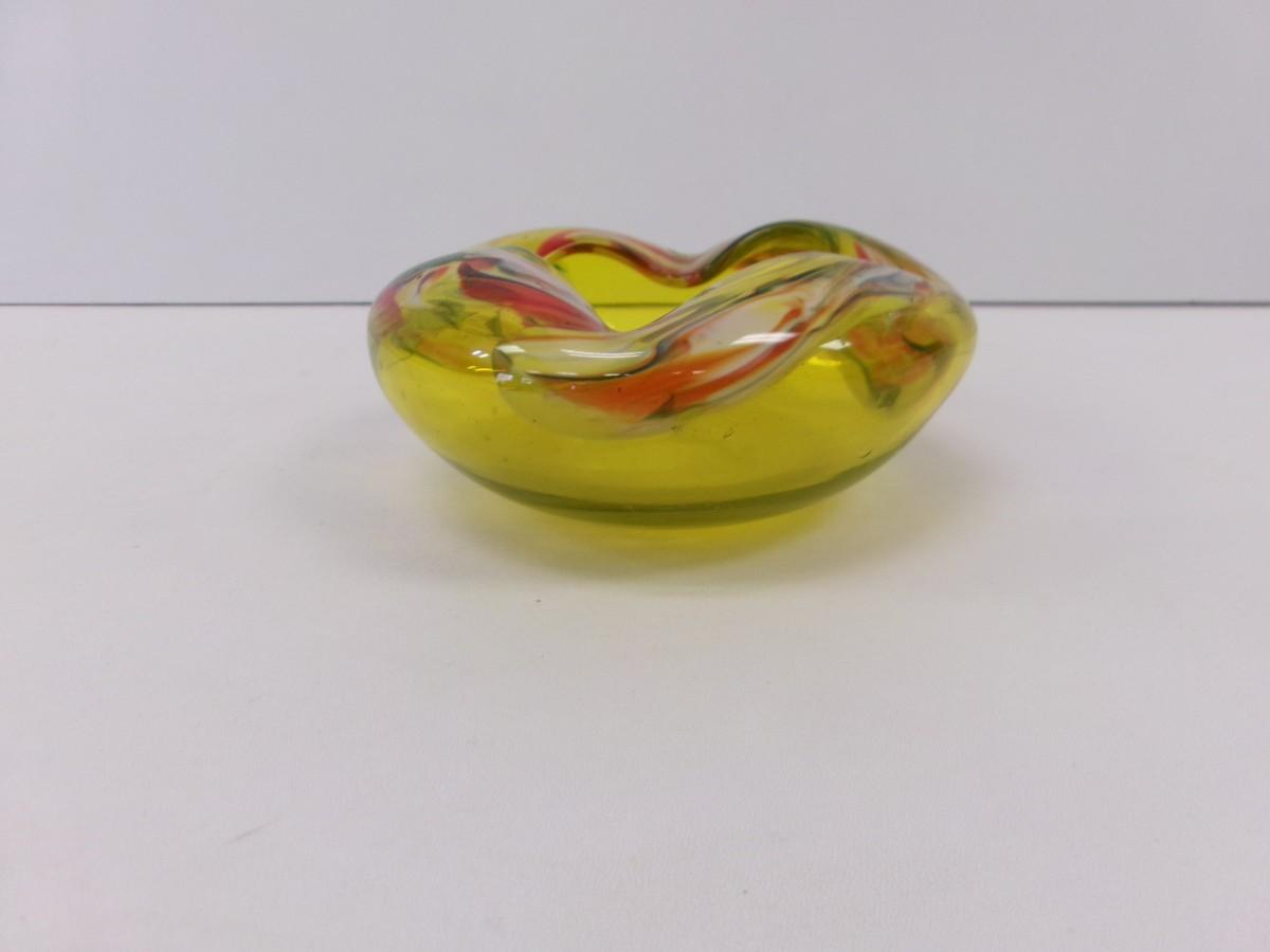 Vintage Venetian Murano Style Yellow Multi Colored Ashtray #38