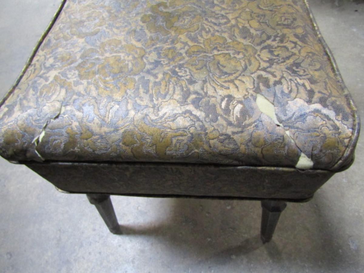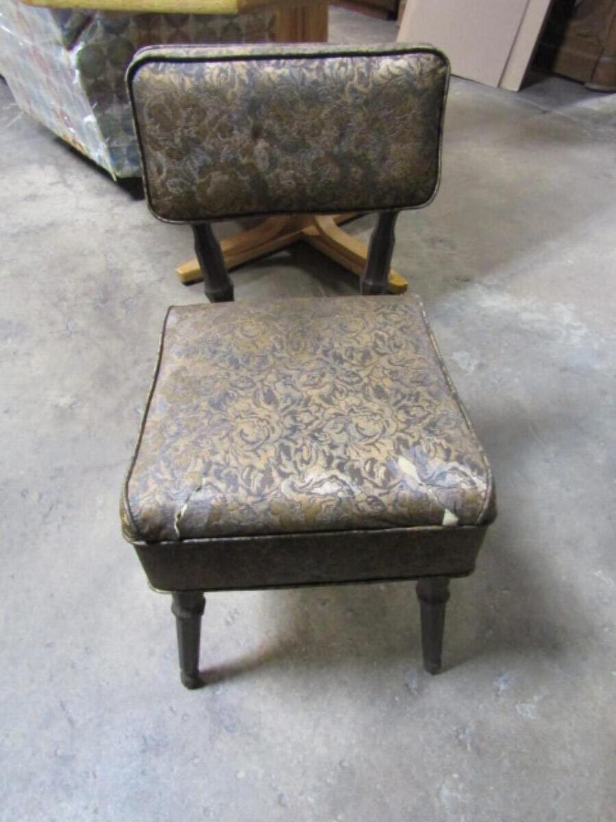 Vintage Vinyl and Wood Sewing Chair with Storage. Seat has some cracking and needs repair- please see pictures.